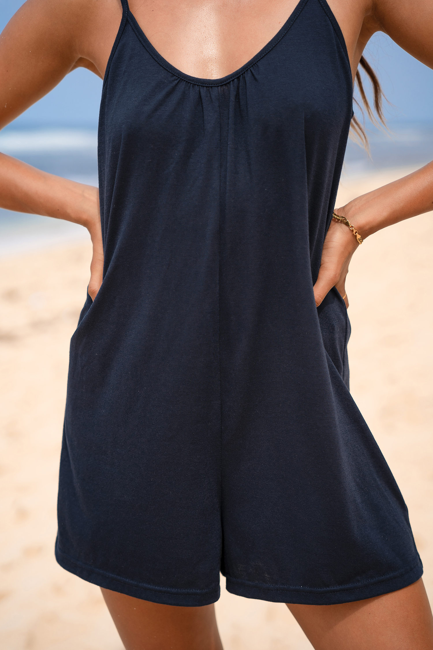 Dark Navy Sleeveless Scoop Neck Jersey Romper