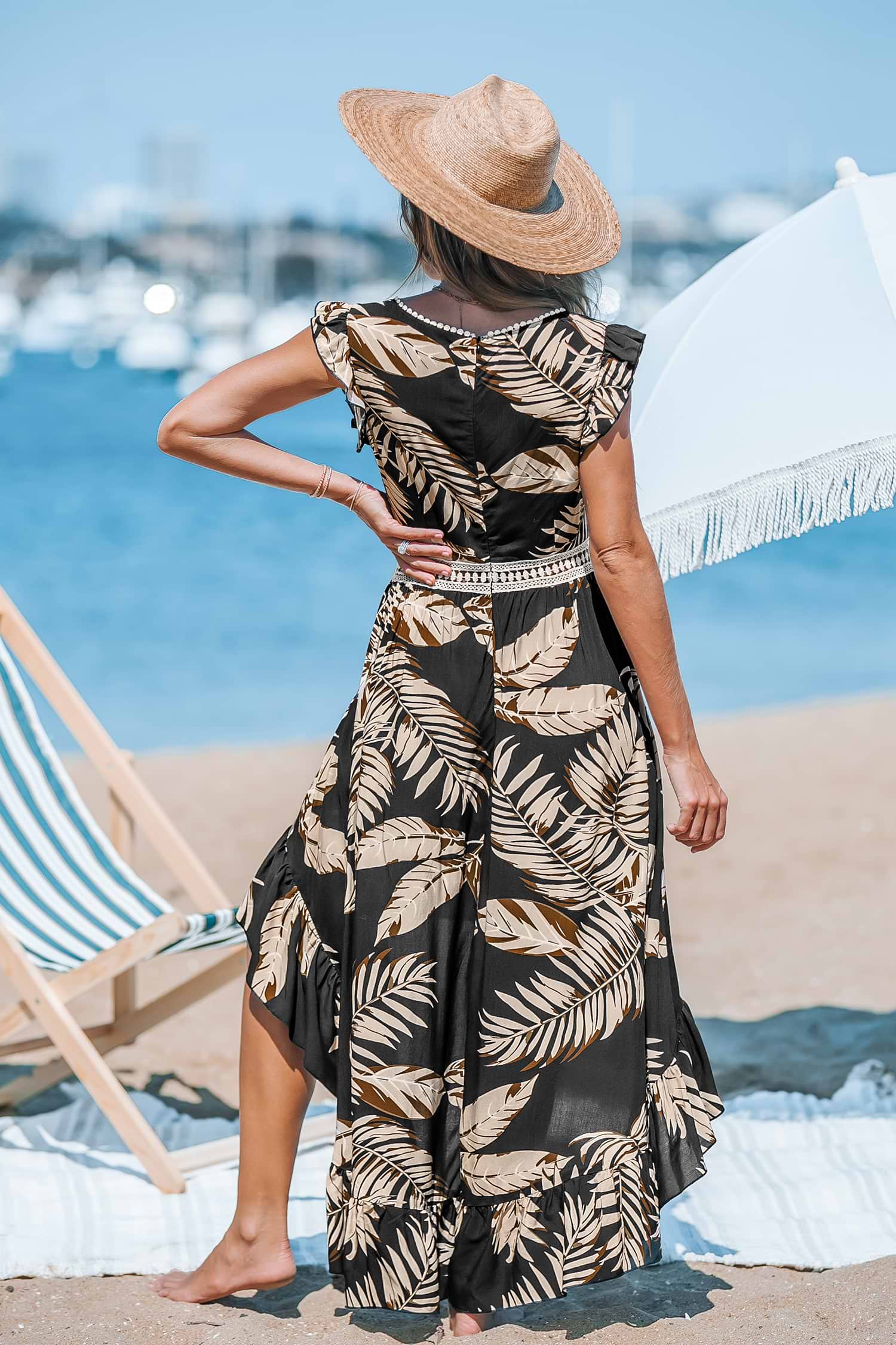 Dark Tropics Flutter Sleeve Asymmetrical Hem Midi Dress