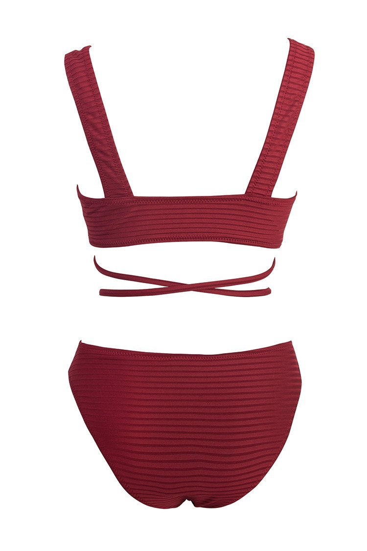 Deep Red V-Neck Bikini