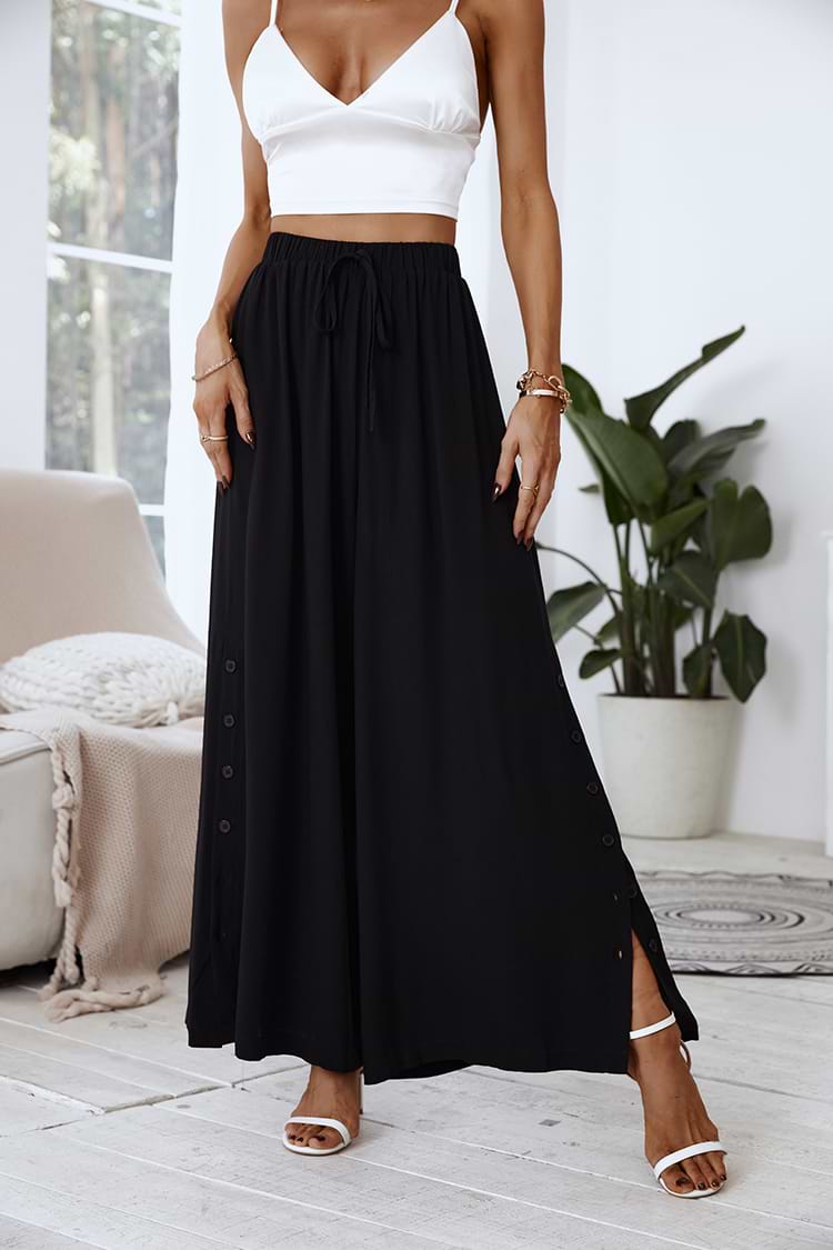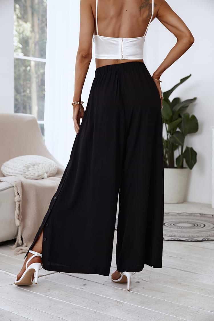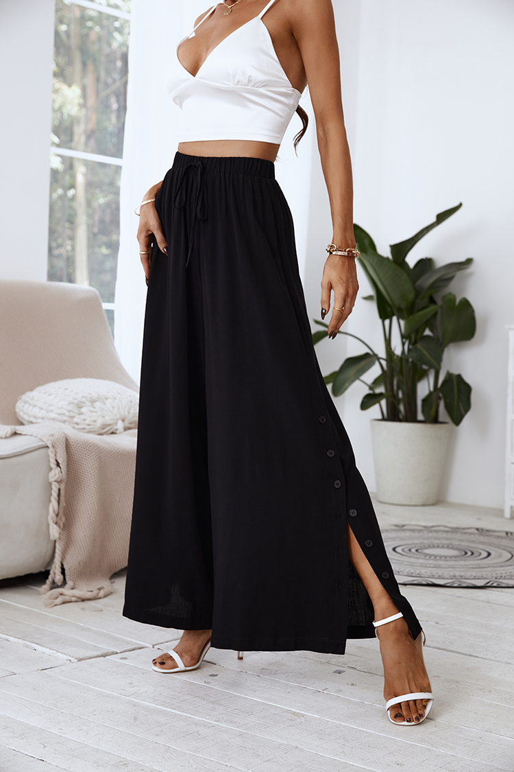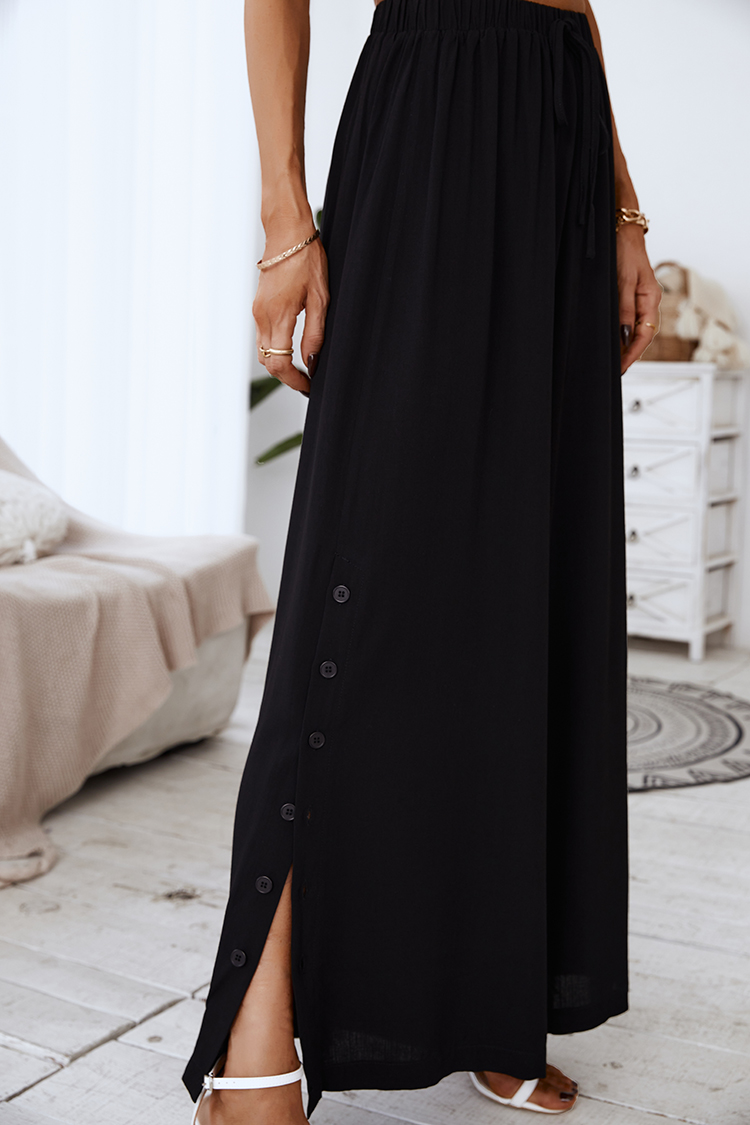 HomeDelphina Elastic Waist Split Tie Black Pants