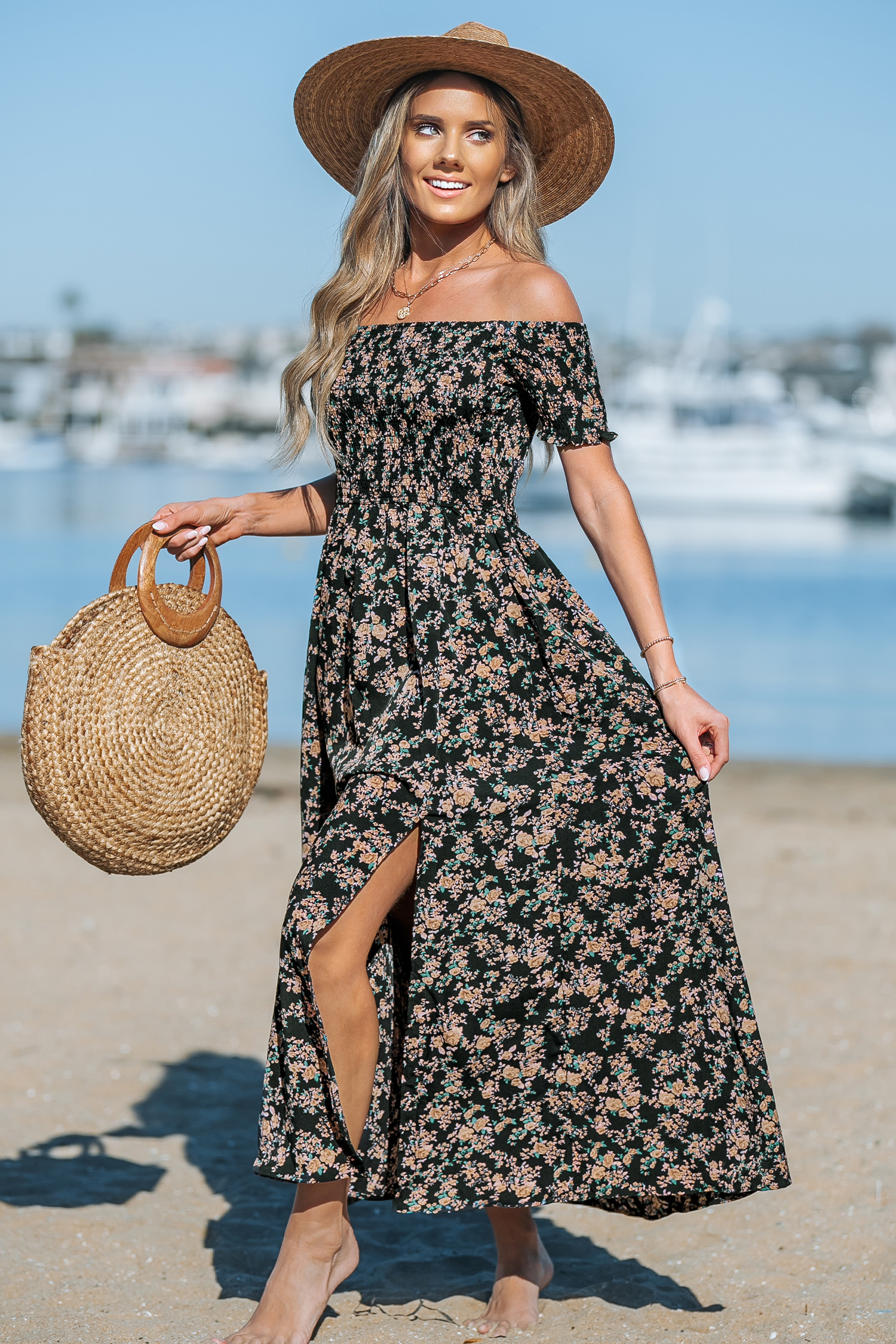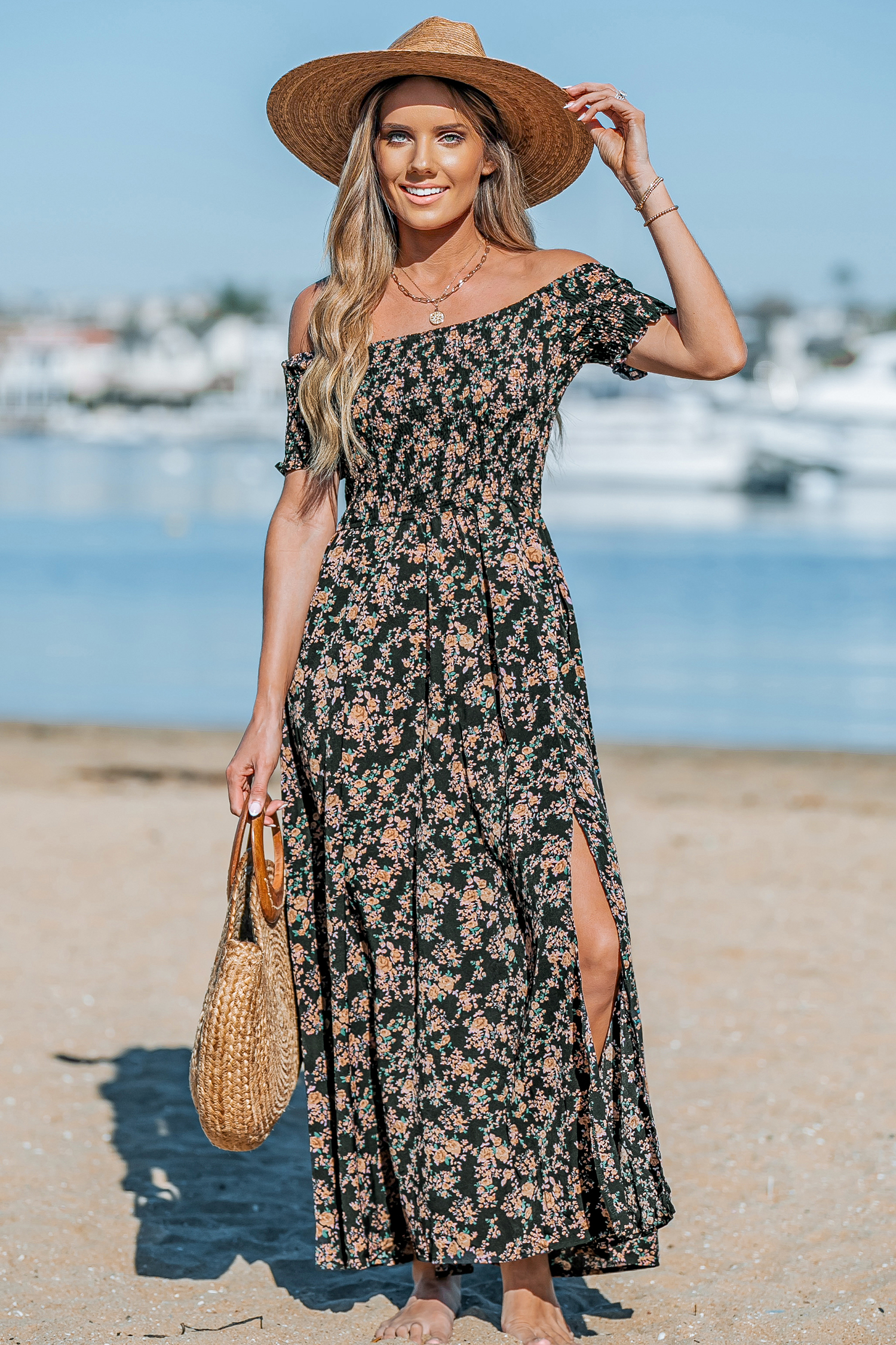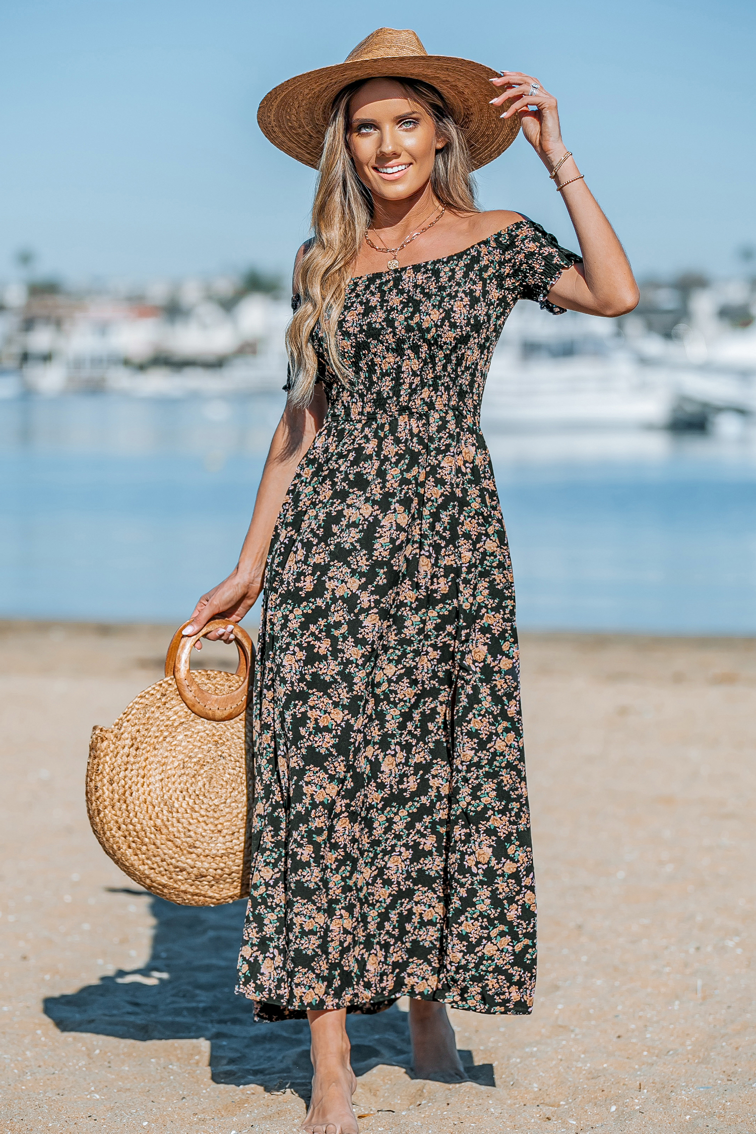 HomeDitsy Floral Smocked Off-the-Shoulder Dress