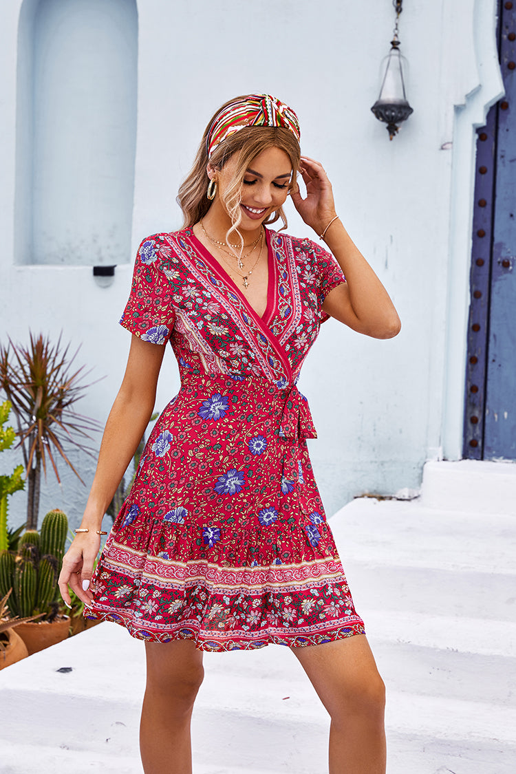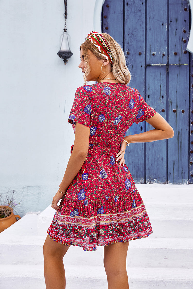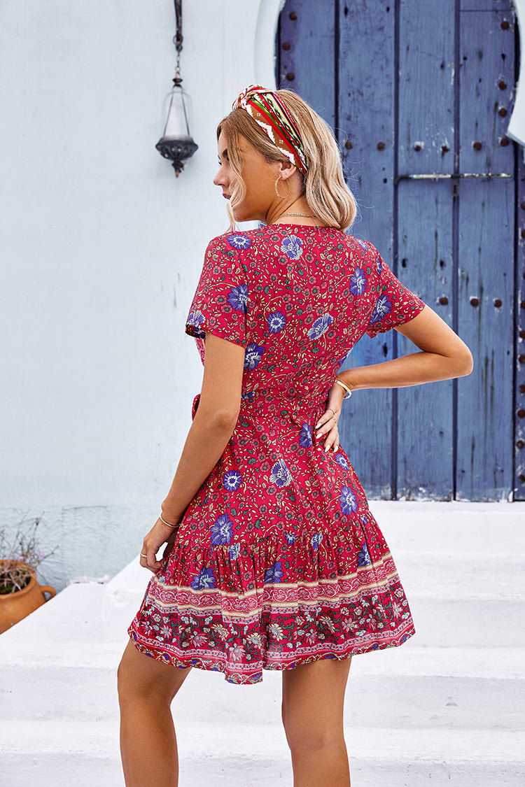HomeDoreen V-neck Ethnic Print A-Shape Dress