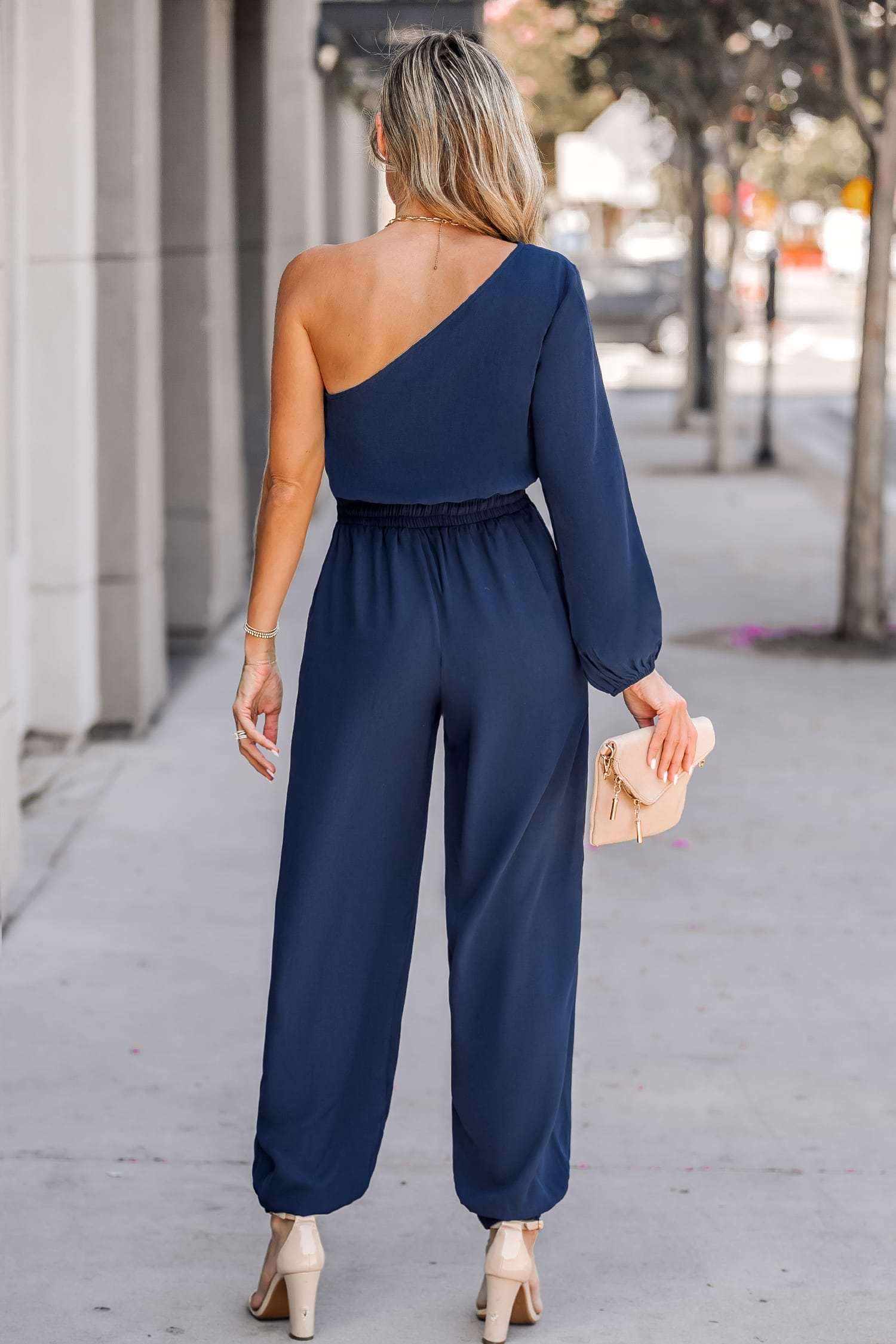 HomeDrawstring One-Shoulder Jogger Jumpsuit