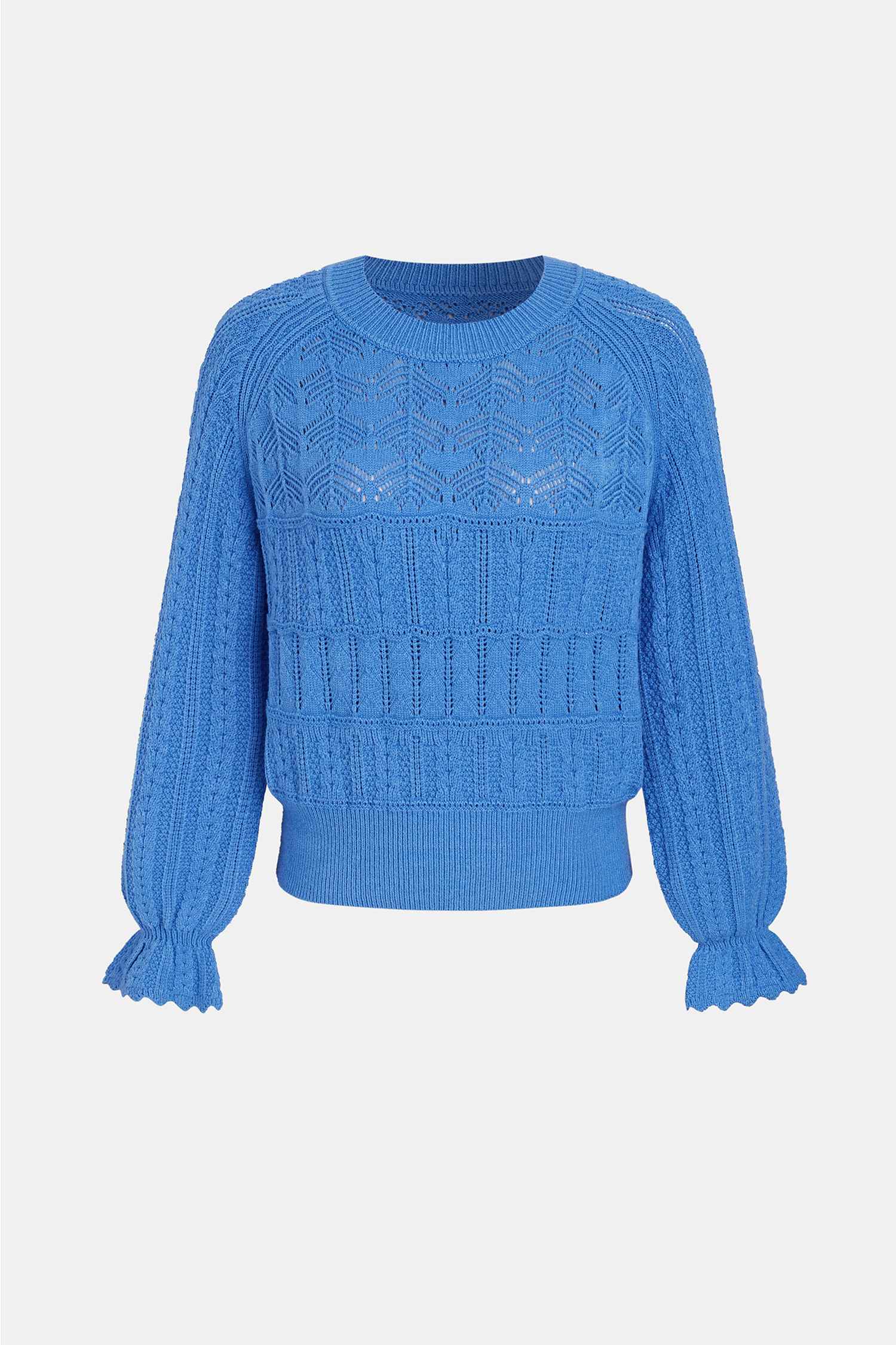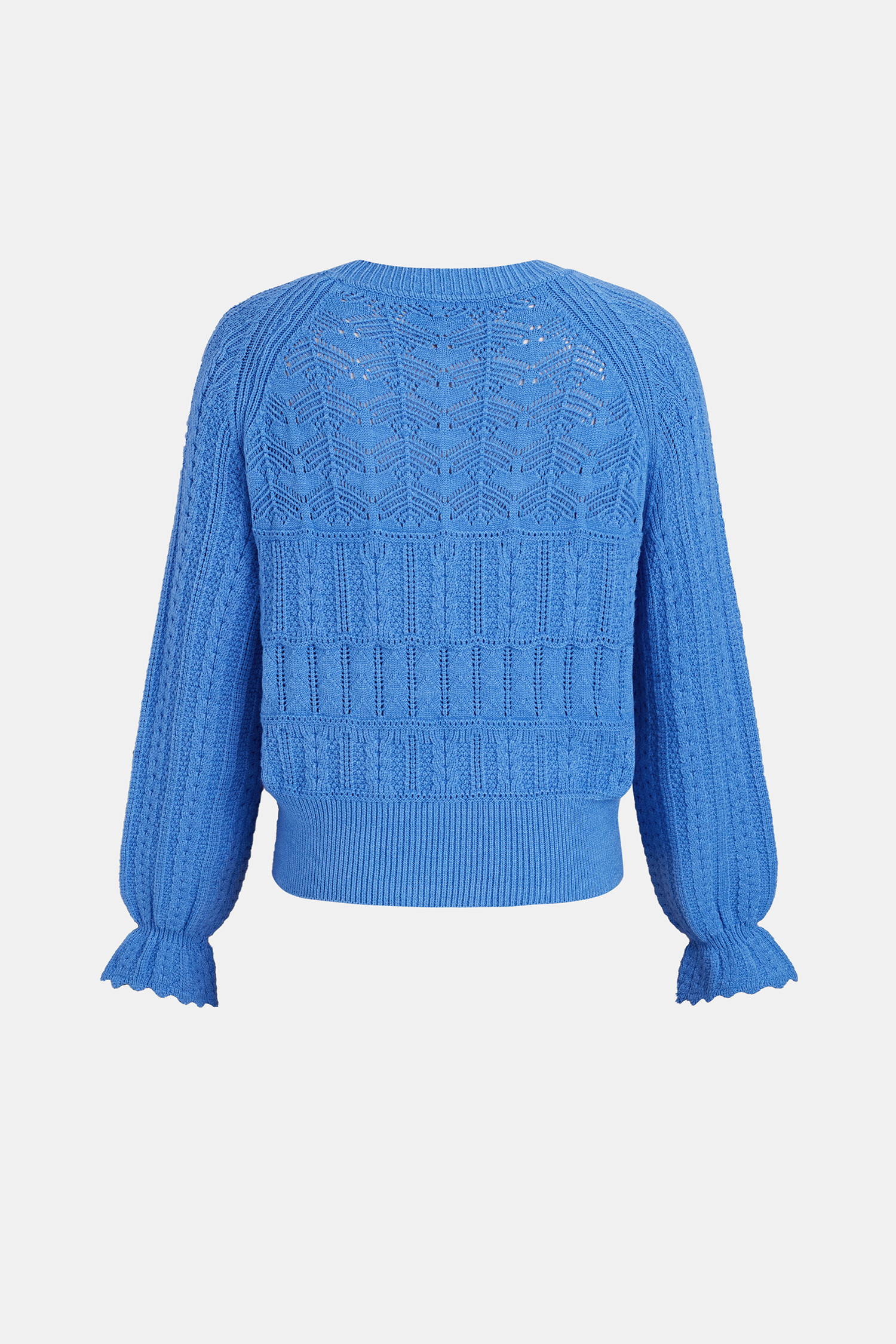 The Dream Day Blue Sweater brings playful charm to your wardrobe! Its round neckline, long sleeves, and ruffle trim add flirty detail to a cozy, stylish fit.