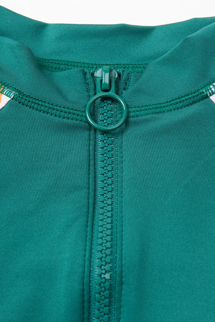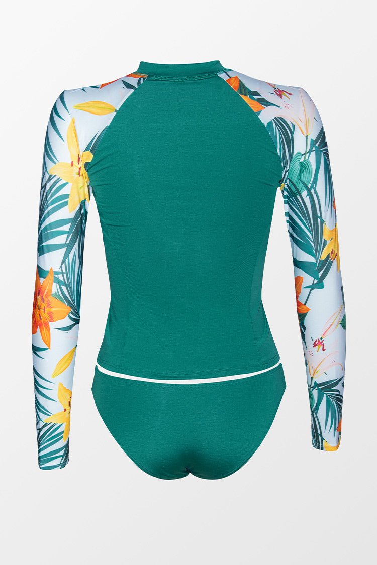 HomeEgypt Hawaiian Print Front Zipper Long Sleeve Tankini