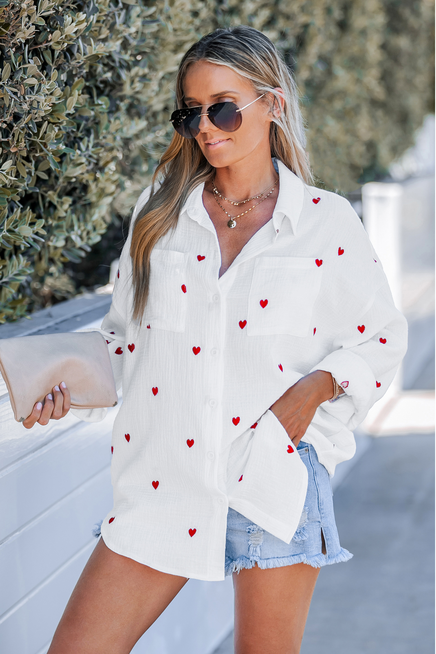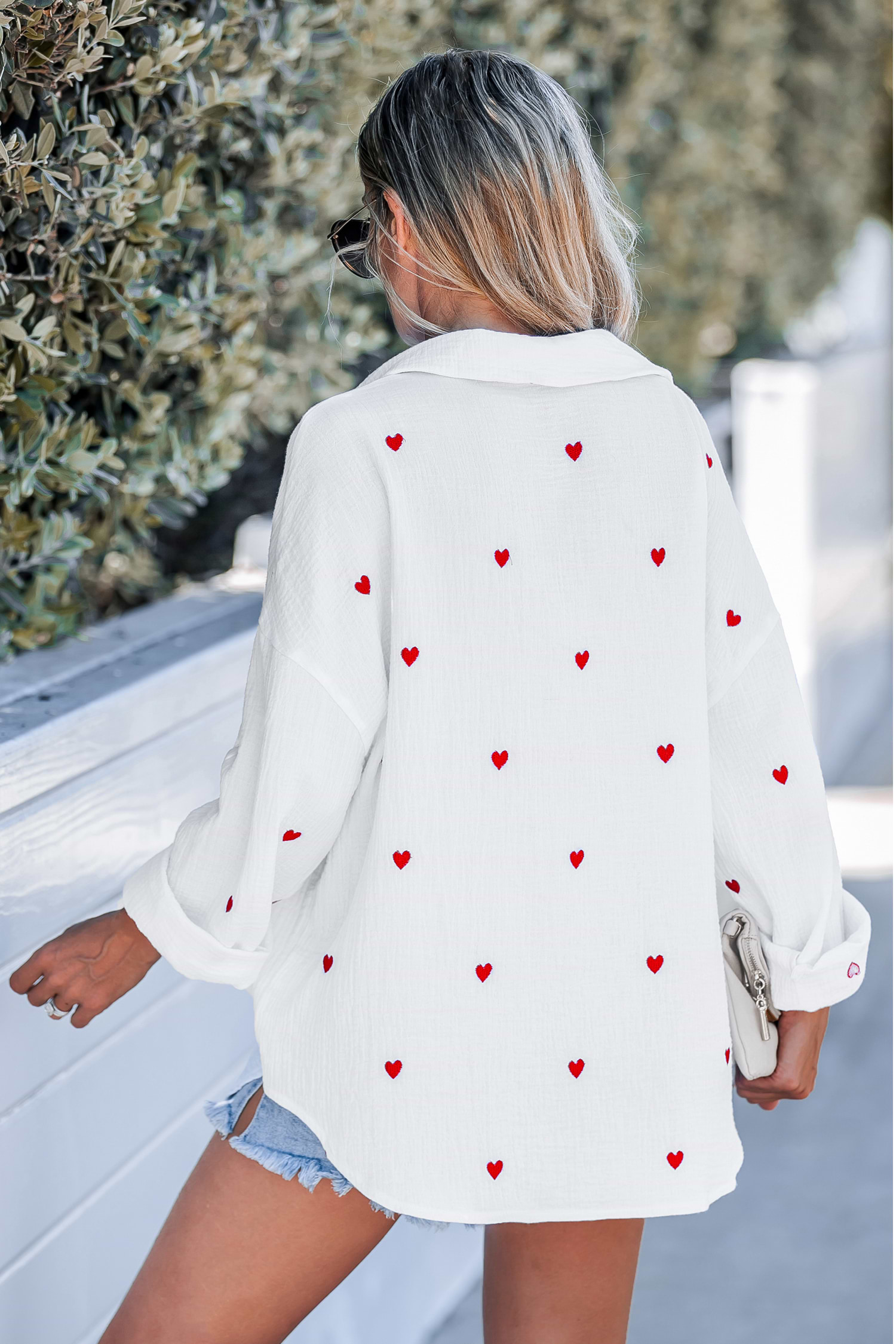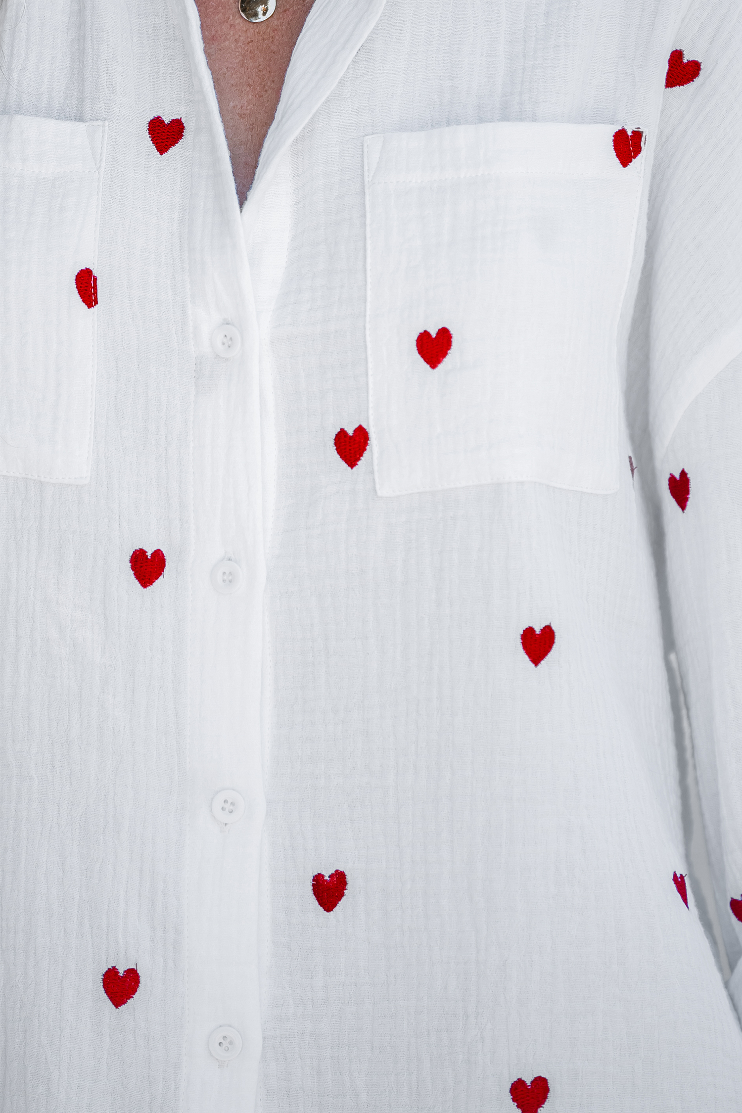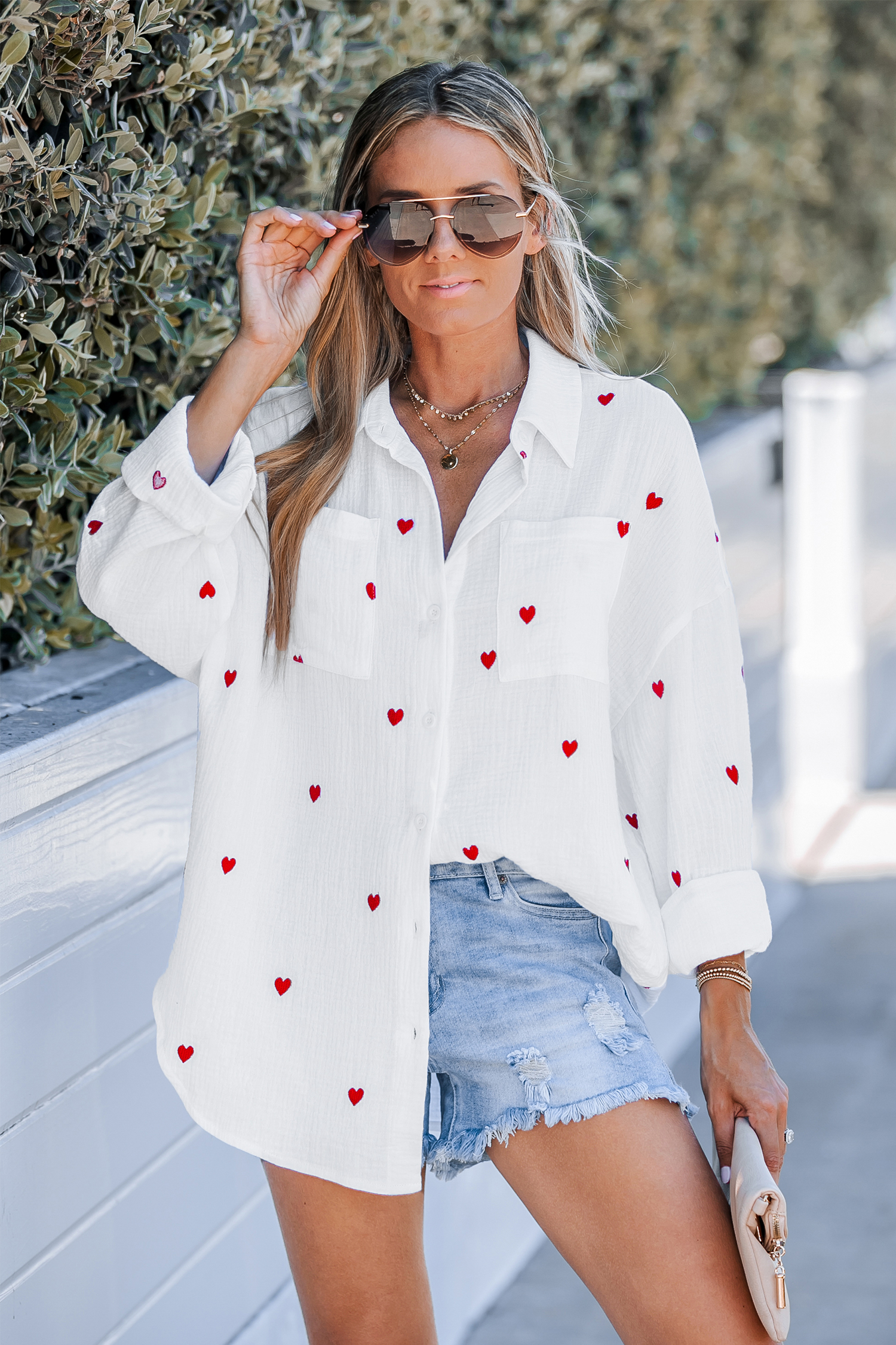HomeEmbroidered Heart Crinkle Woven Shirt