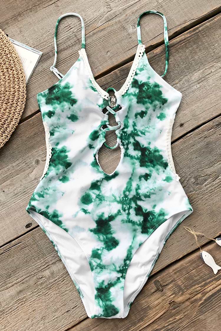 HomeEmerald Green Tie-dye One-piece Swimsuit