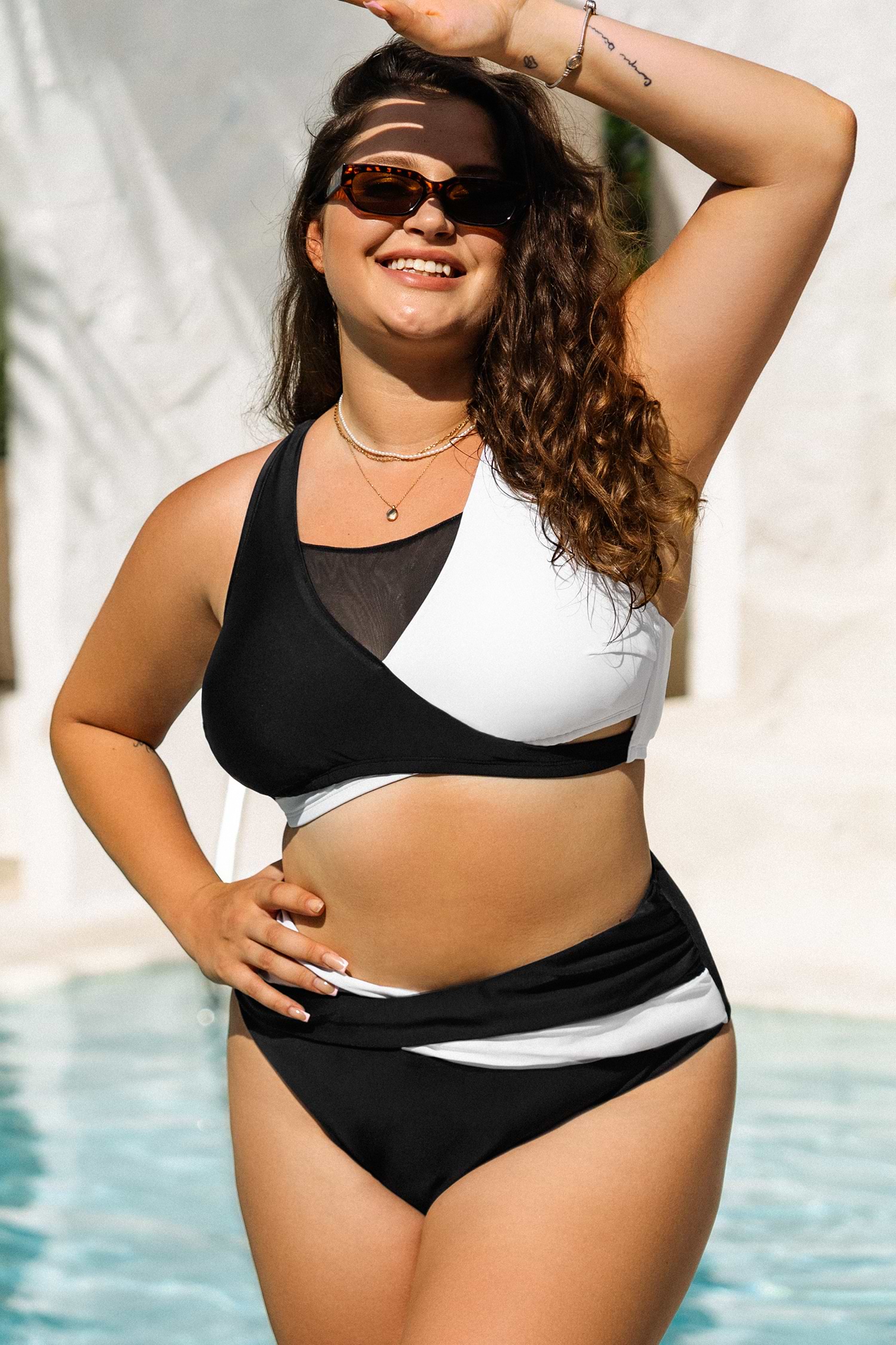 Plus Size Black Colorblock & Mid Rise Bikini Swimsuit