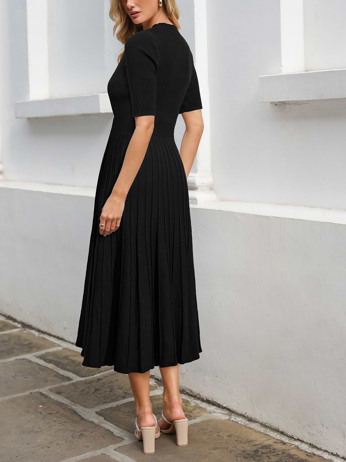 The En Pointe Black Sweater Dress is pleated to perfection! The high neckline and short sleeves pair with a midi silhouette for a look that’s feminine, graceful, and ready for any occasion.