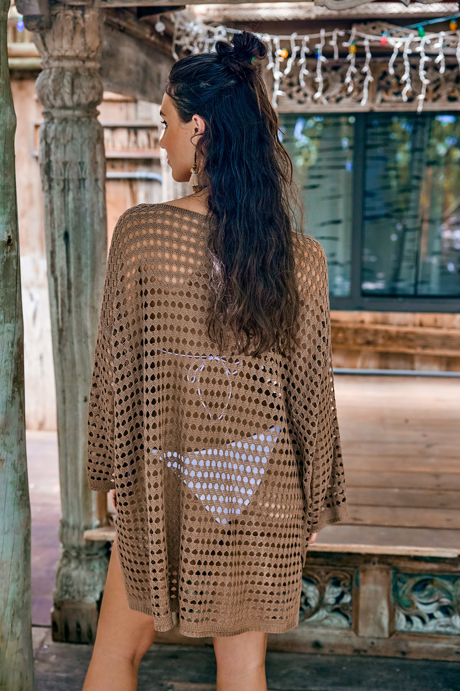 Espresso Brown Open Knit Mini Cover-Up Dress