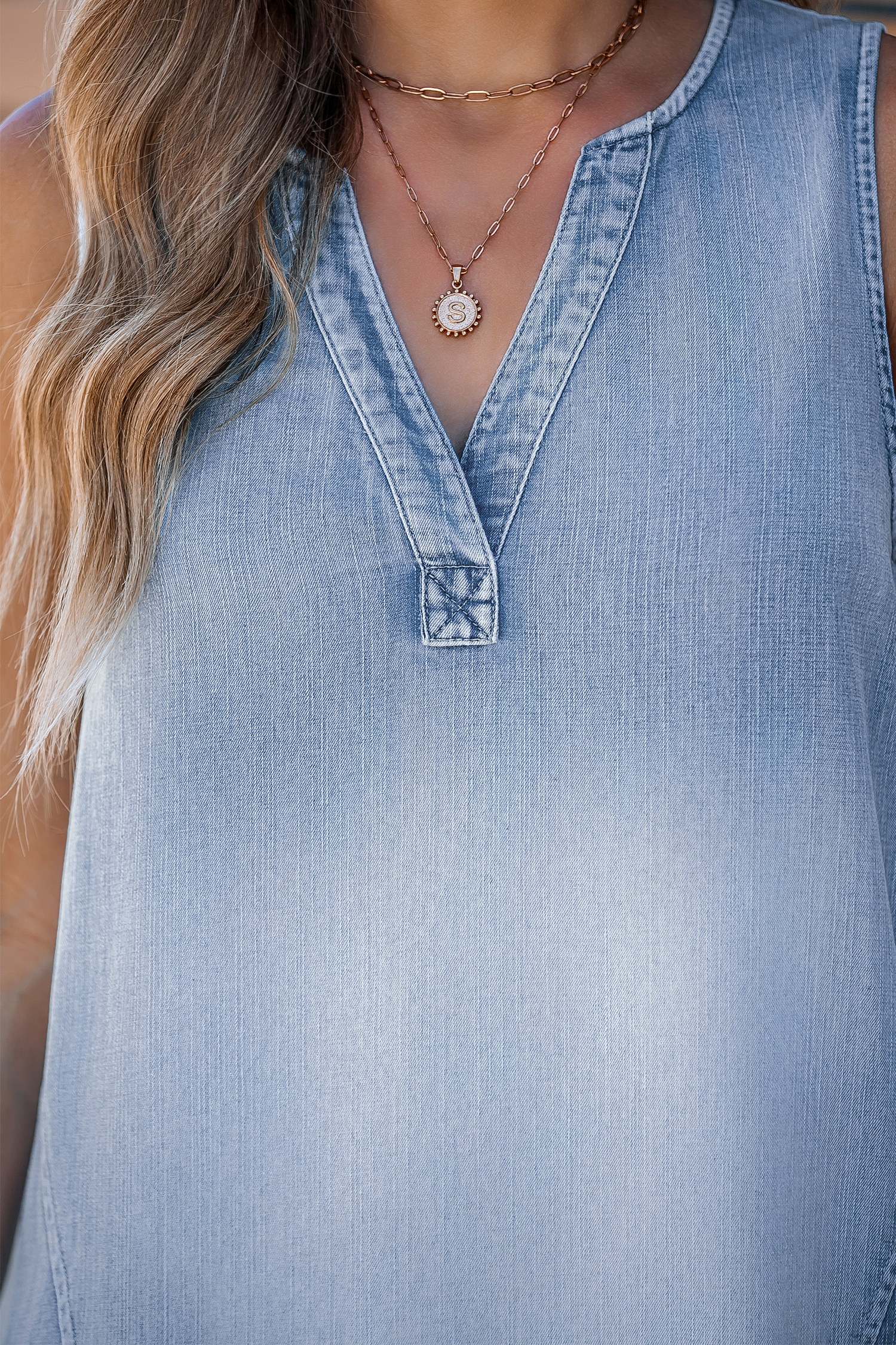 Faded Denim Sleeveless Midi Dress