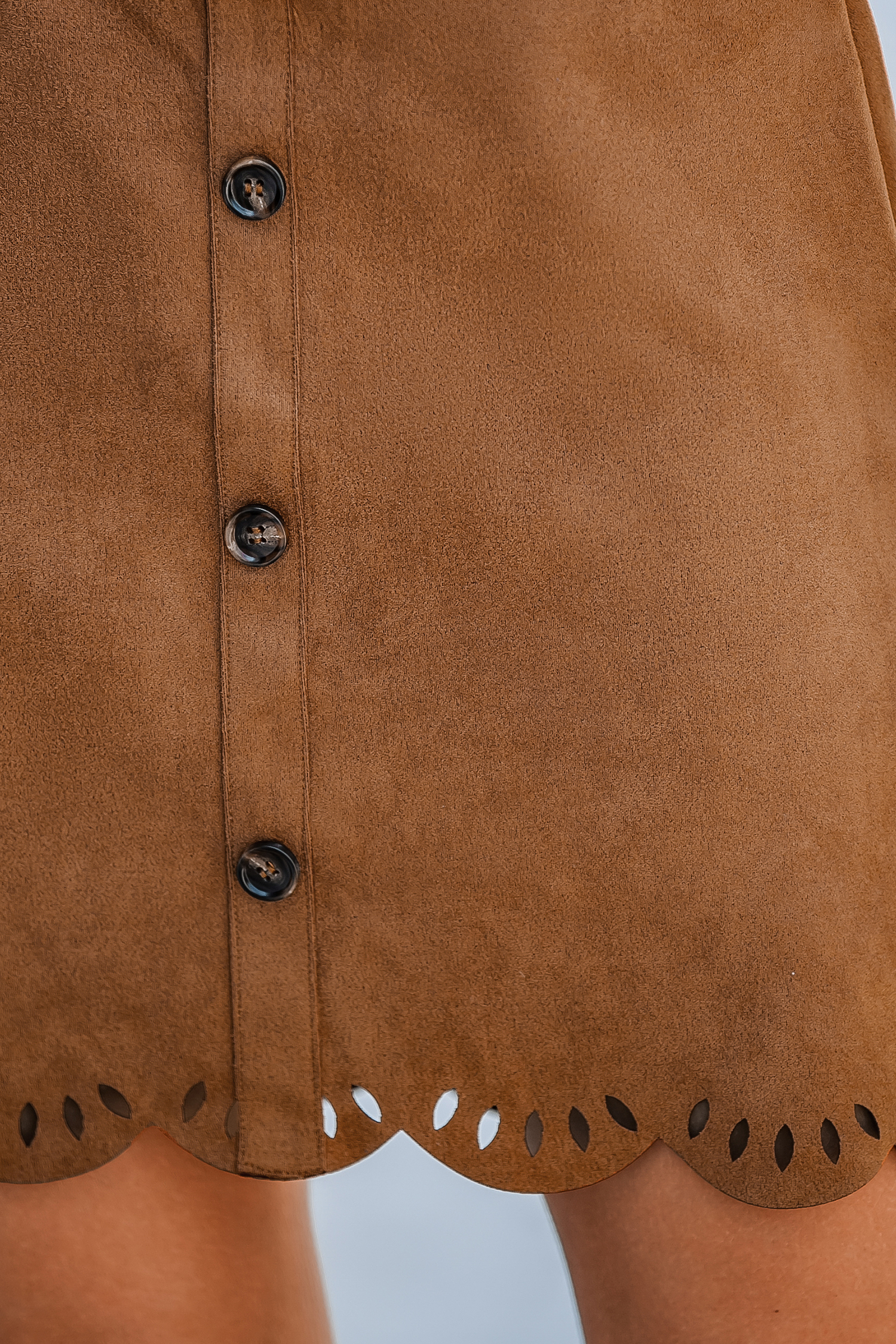 HomeFaux Leather Perforated Scalloped Hem Mini Skirt