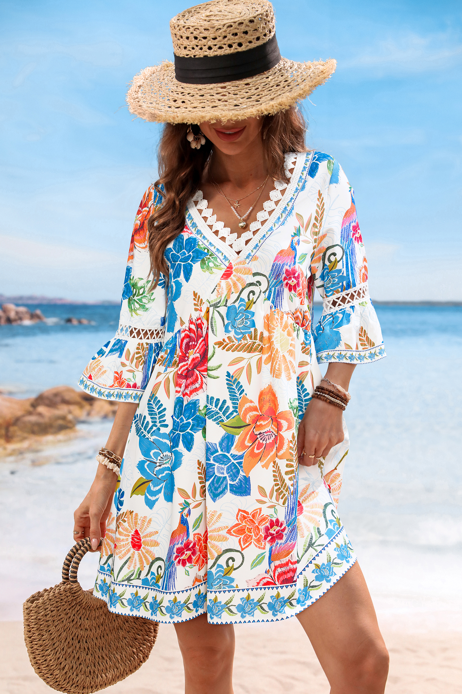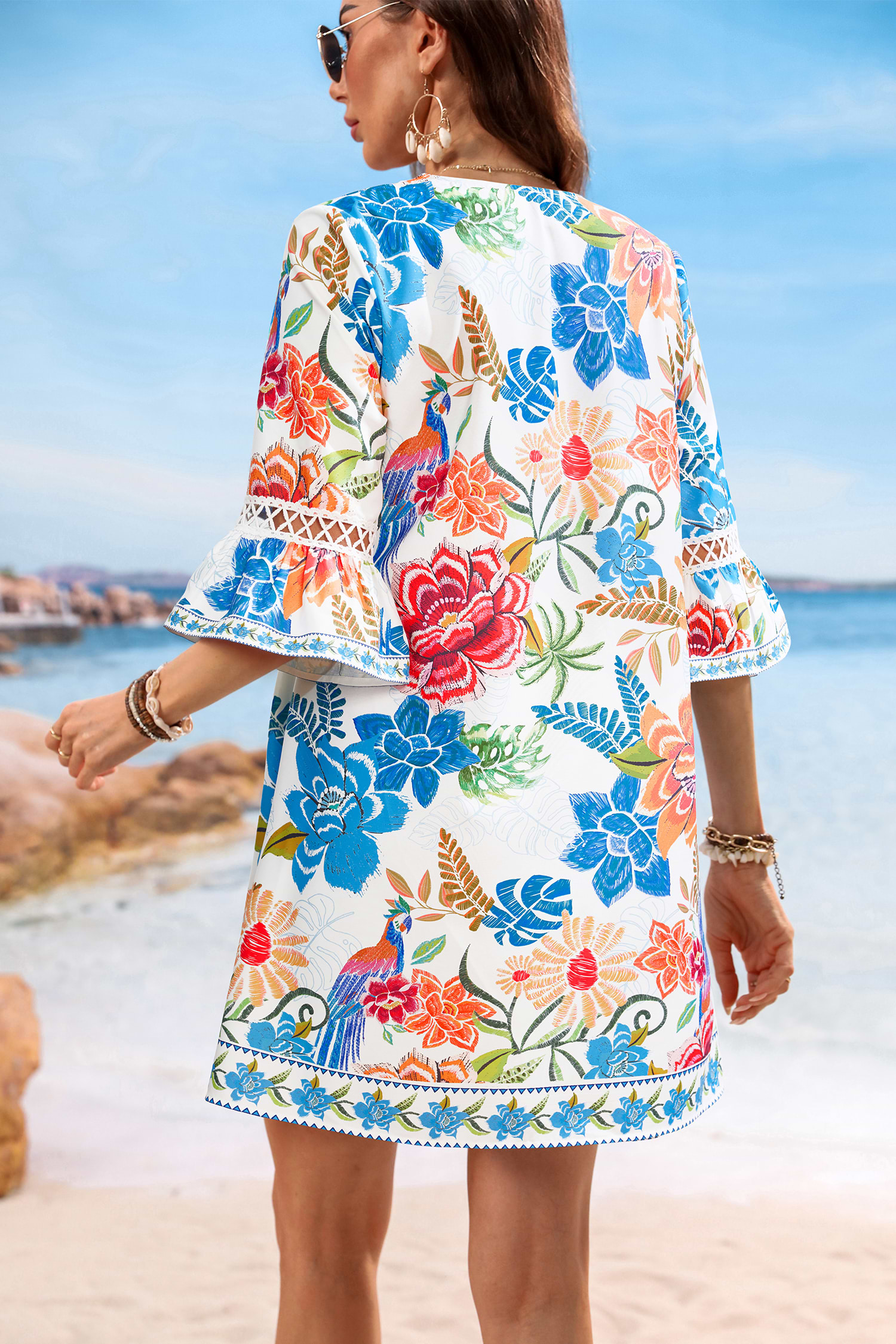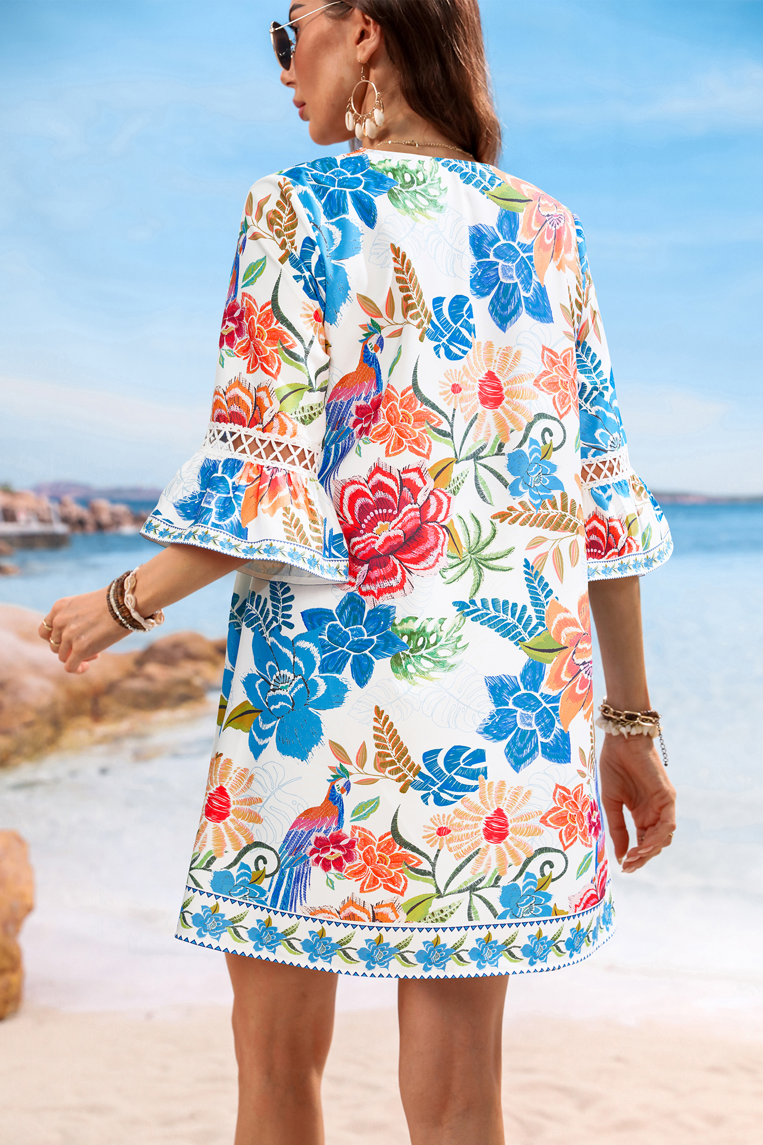 The Field Notes Floral Blue Mini Dress brings fresh, sunny vibes with a touch of easy charm! It features a V-neckline, half sleeves, and a mini length for a playful, effortless look.