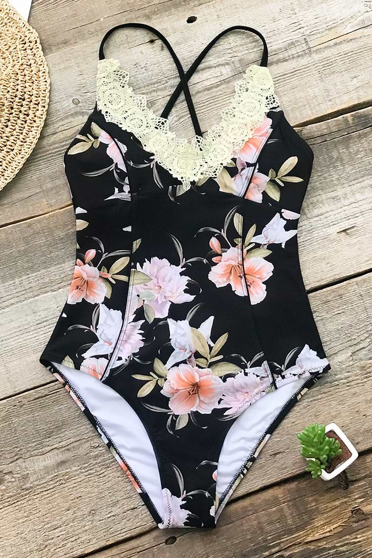 Flirty Floral Lace One-Piece Swimsuit