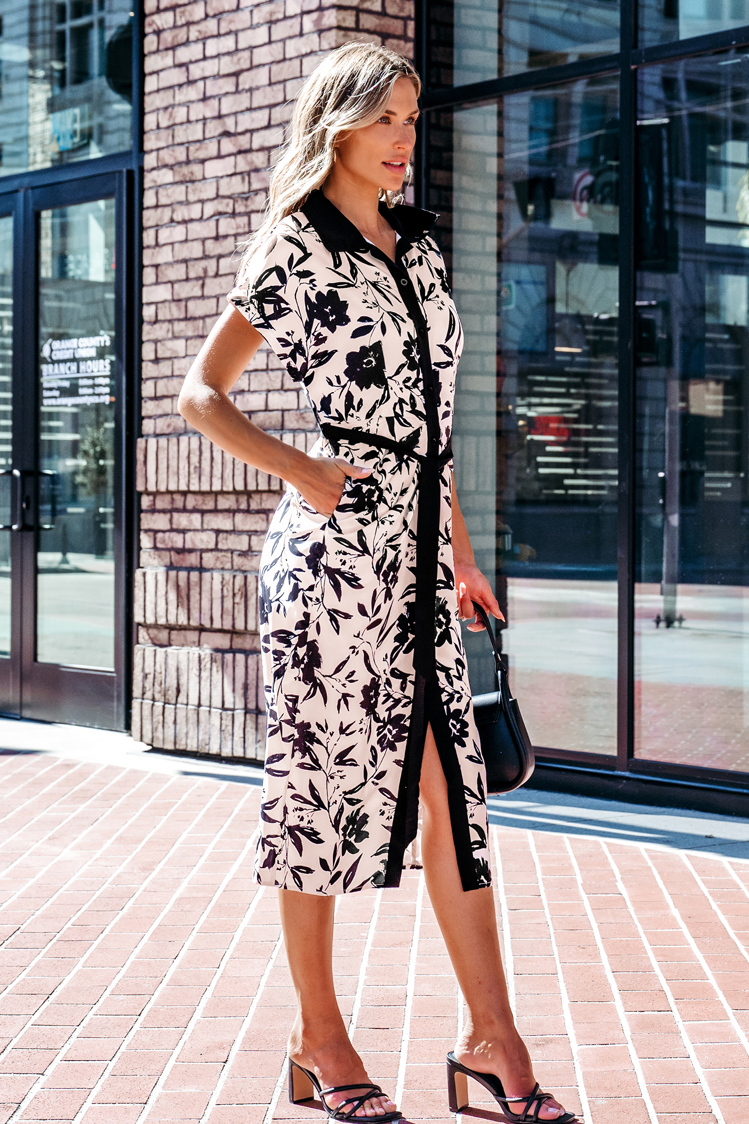 Floral Collared Front Button Midi Dress