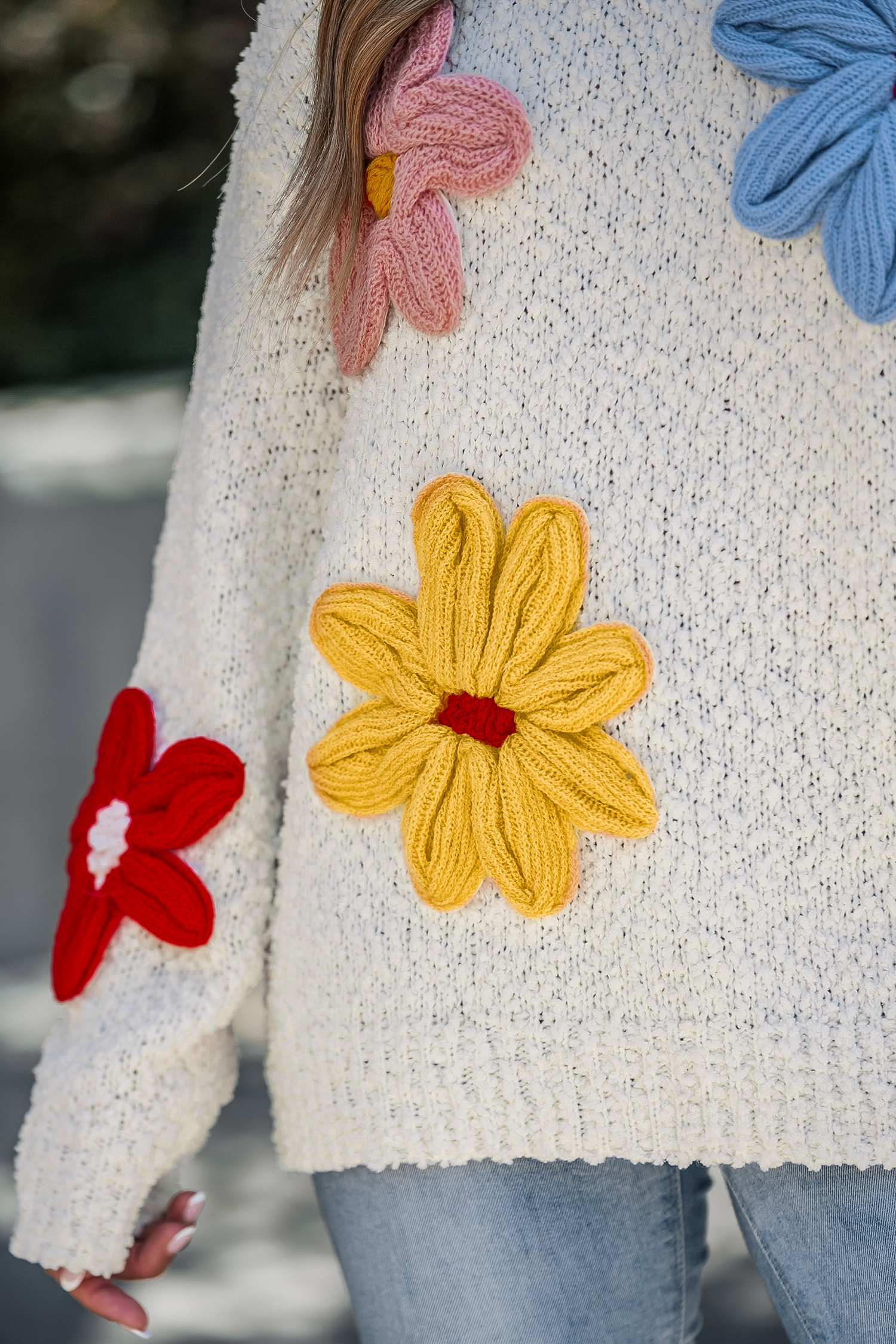 HomeFloral Embellished Long Sleeve Knit Sweater