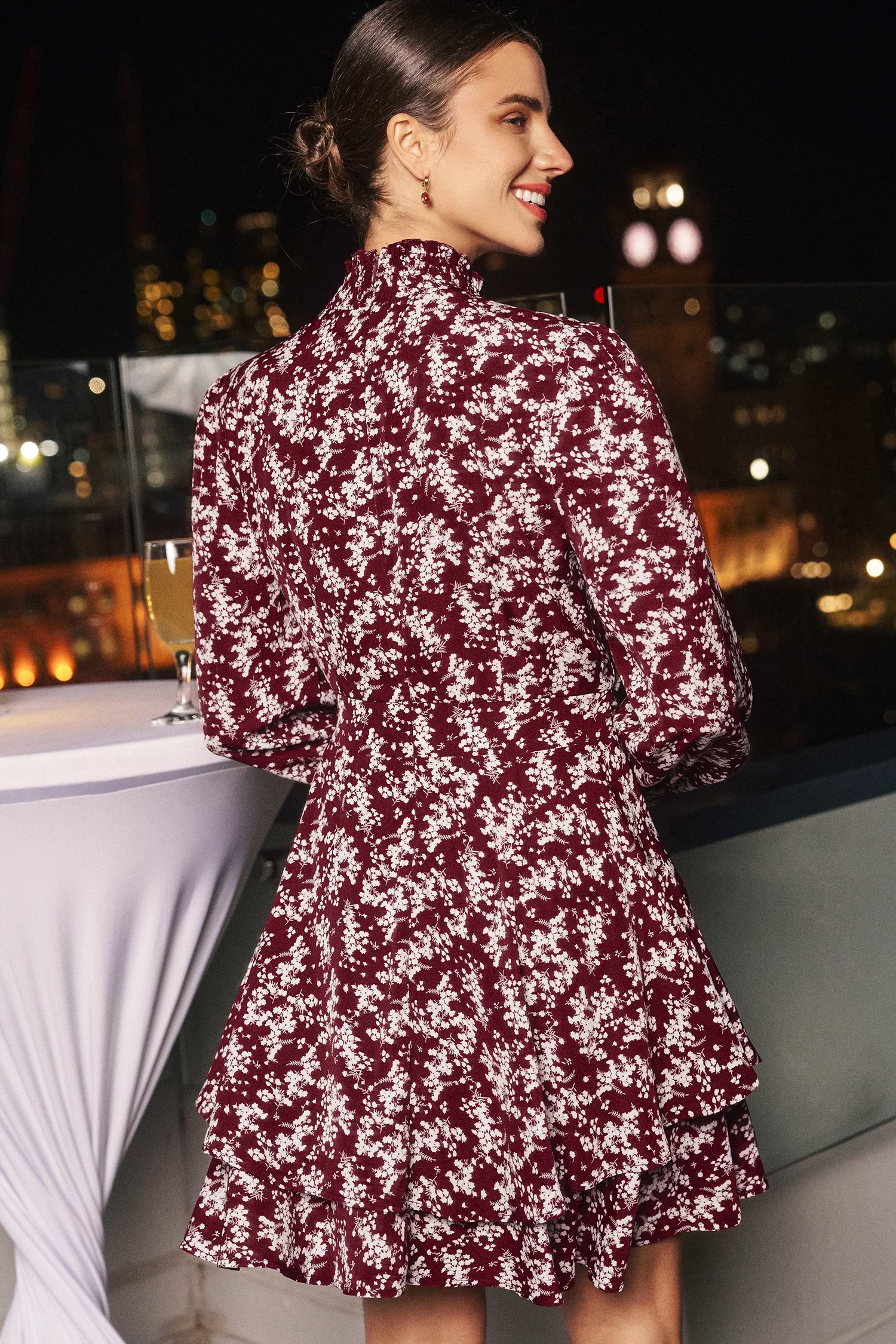 Floral Mockneck Blouson Sleeve Mini Dress