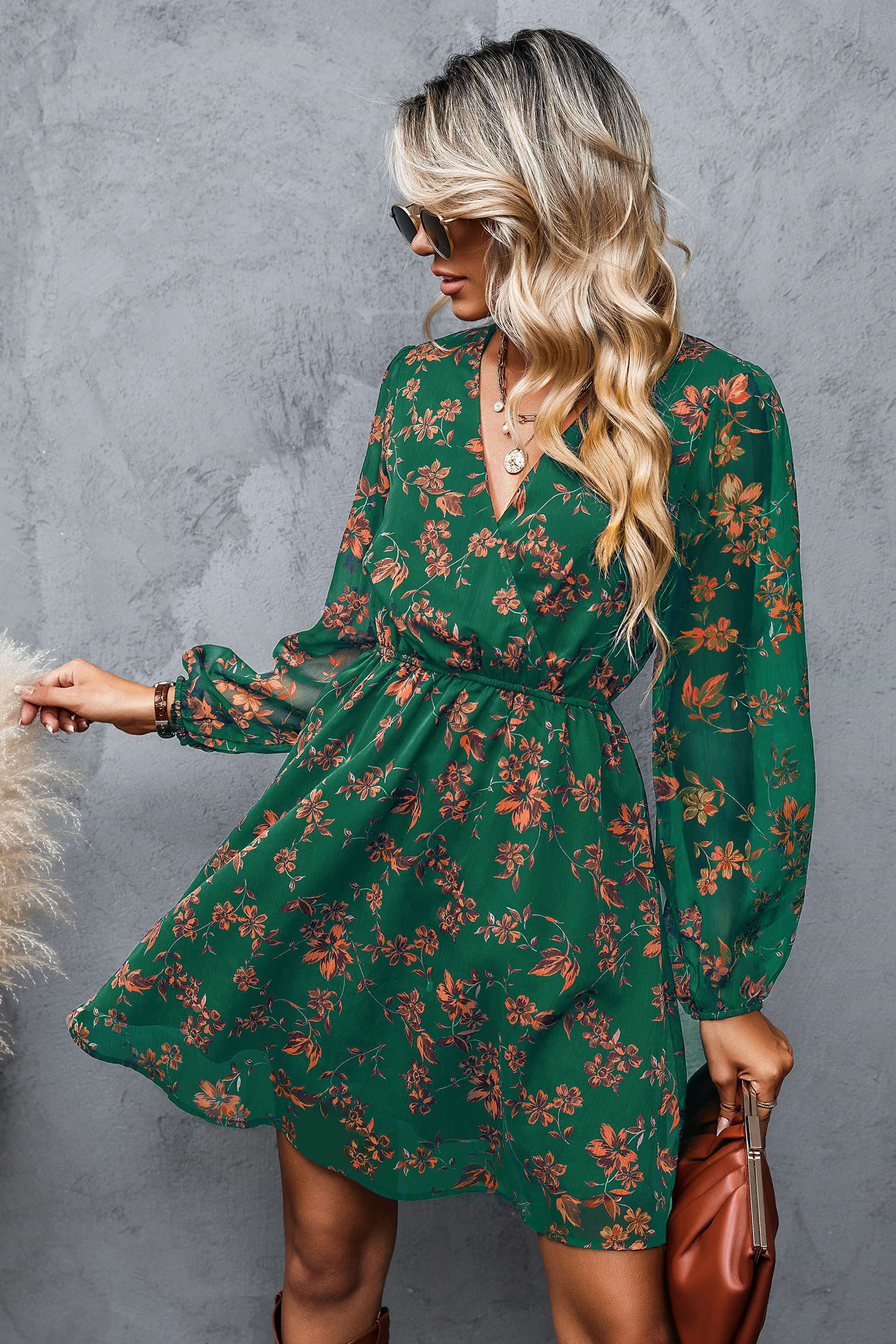 HomeFloral Print Chiffon Mini Dress