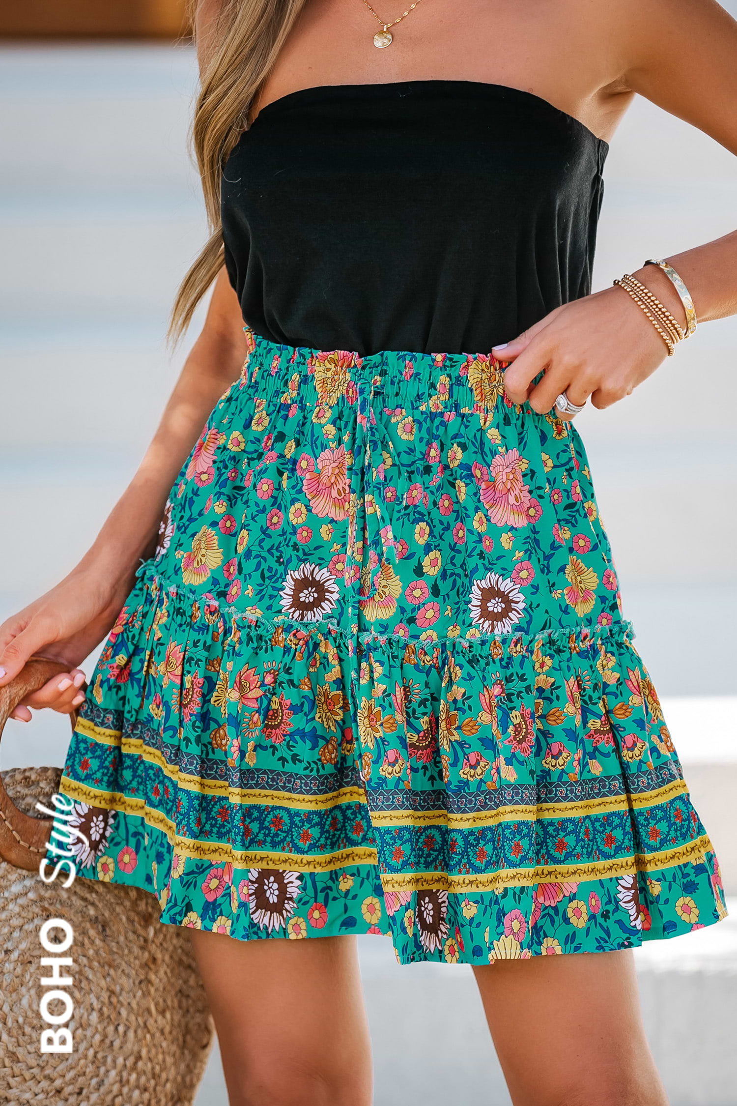 Floral Print Drawstring Mini Skirt