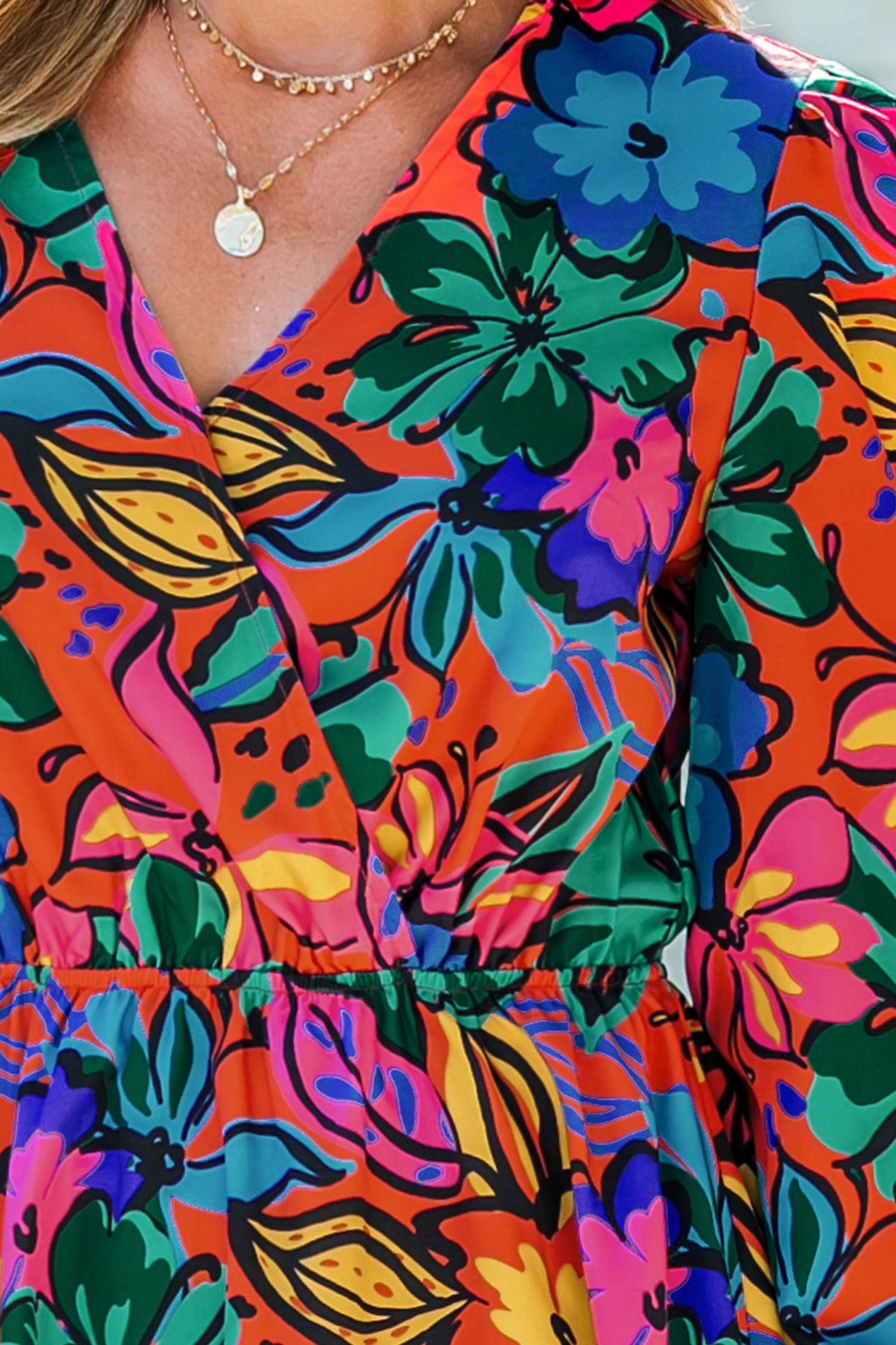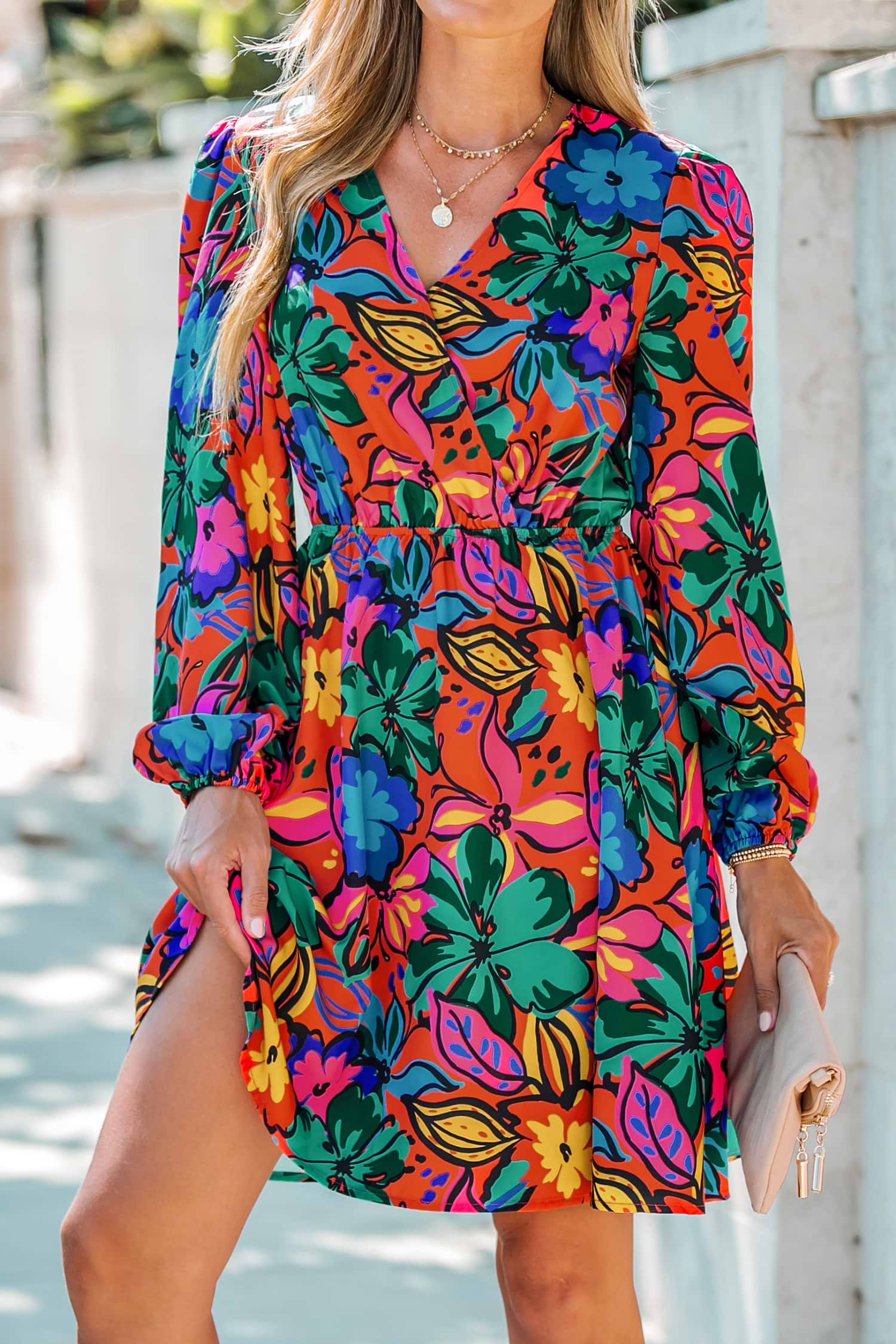 HomeFloral Print Long Peasant Sleeve Mini Dress