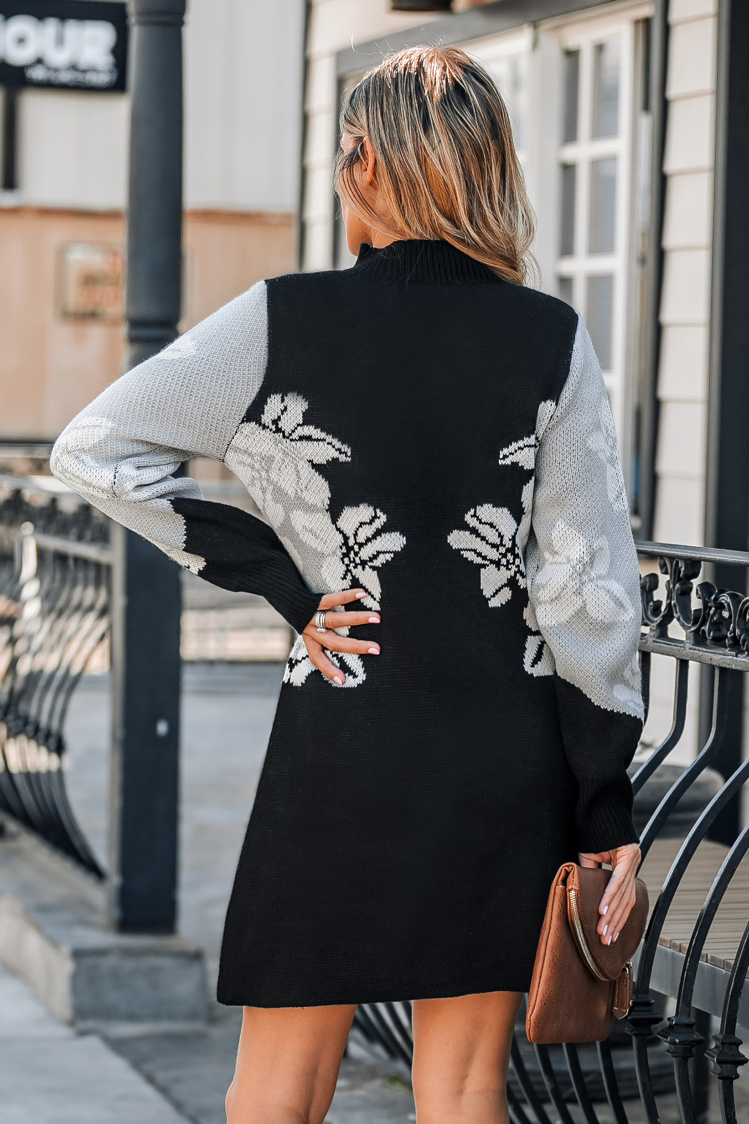 Floral Print Long Sleeve Sweater Dress