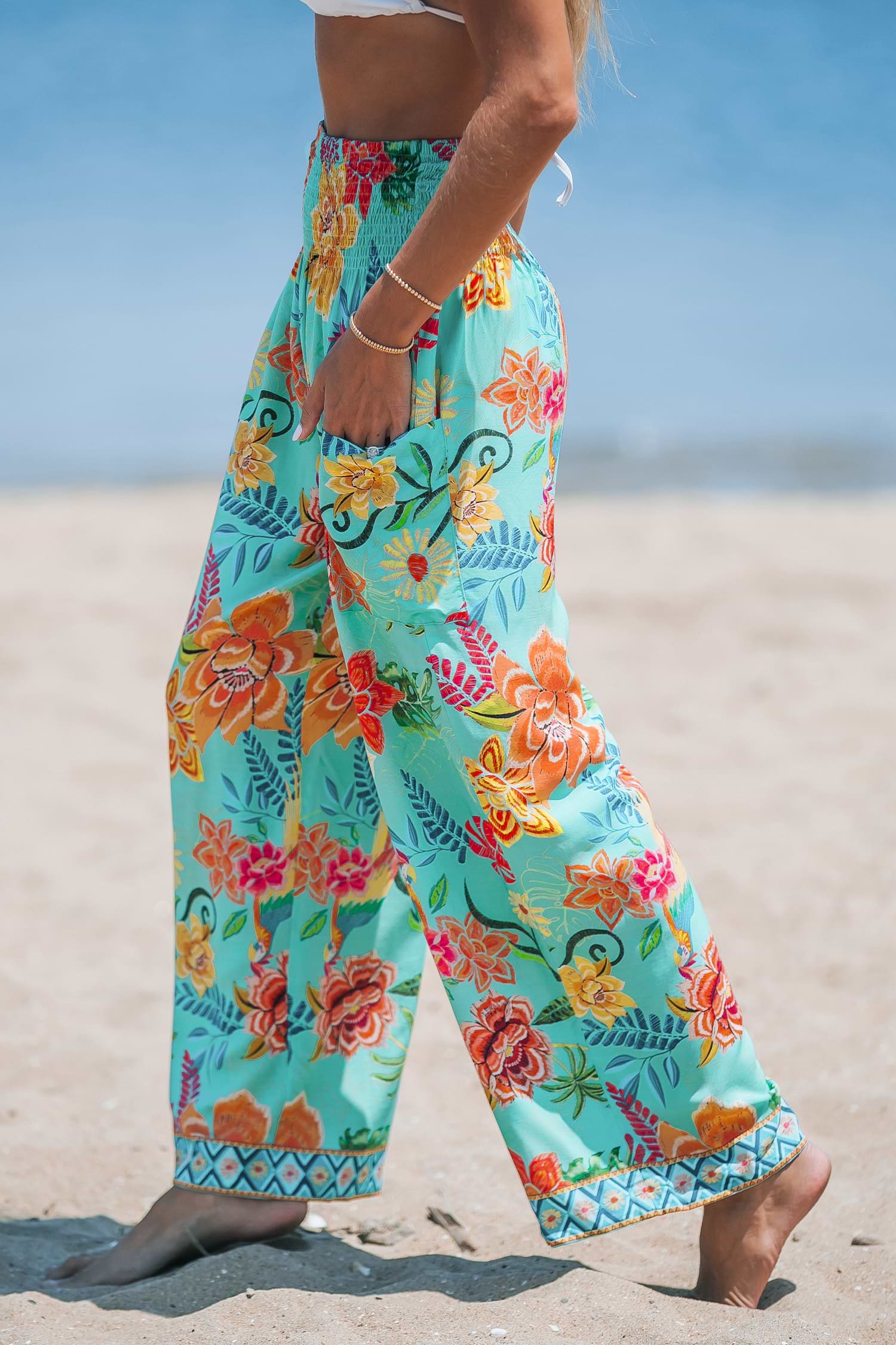 Floral Print Smocked High-Rise Pants