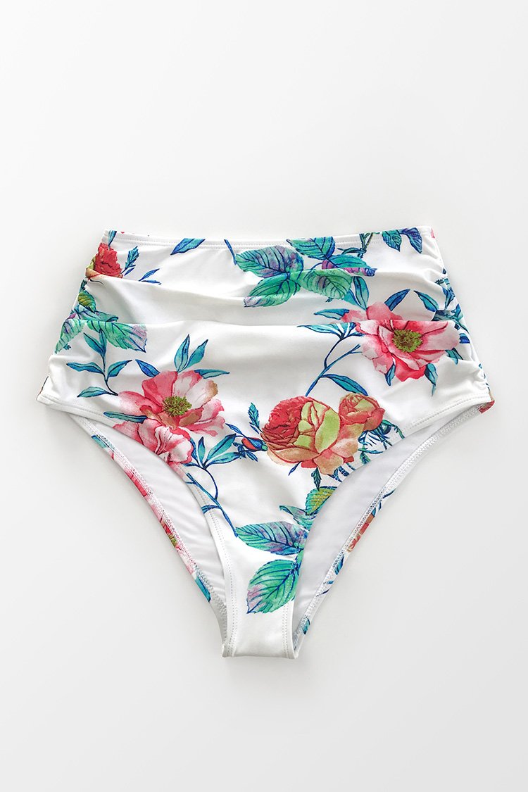 Floral Shirring High Waisted Bikini Bottom