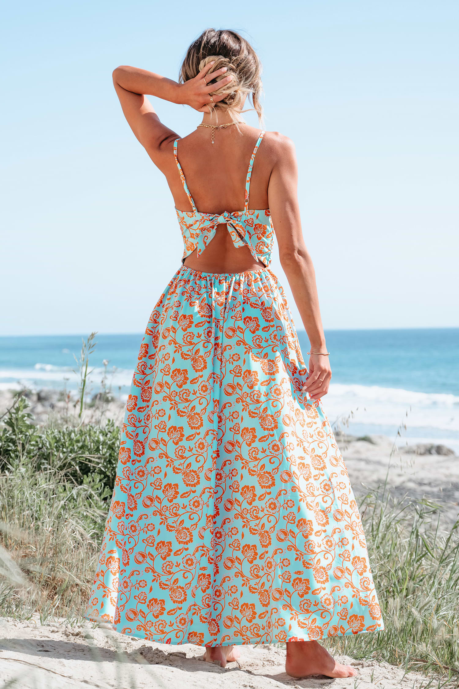 Orange Floral Sweetheart Twist & Keyhole Maxi Dress