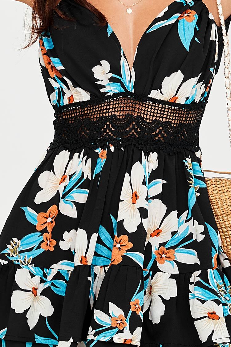 Floral V-Neck Halter Mini Dress