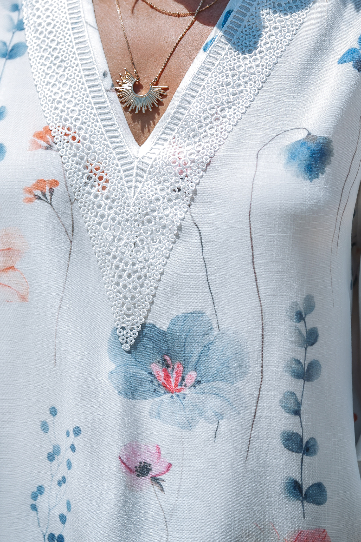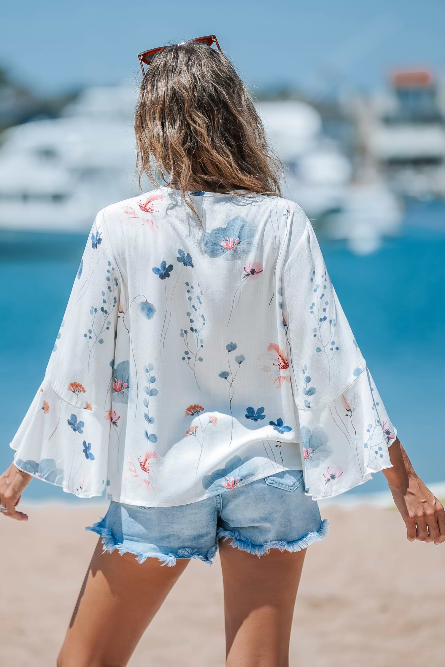 HomeFloral V-Neck Ruffled Sleeve Blouse
