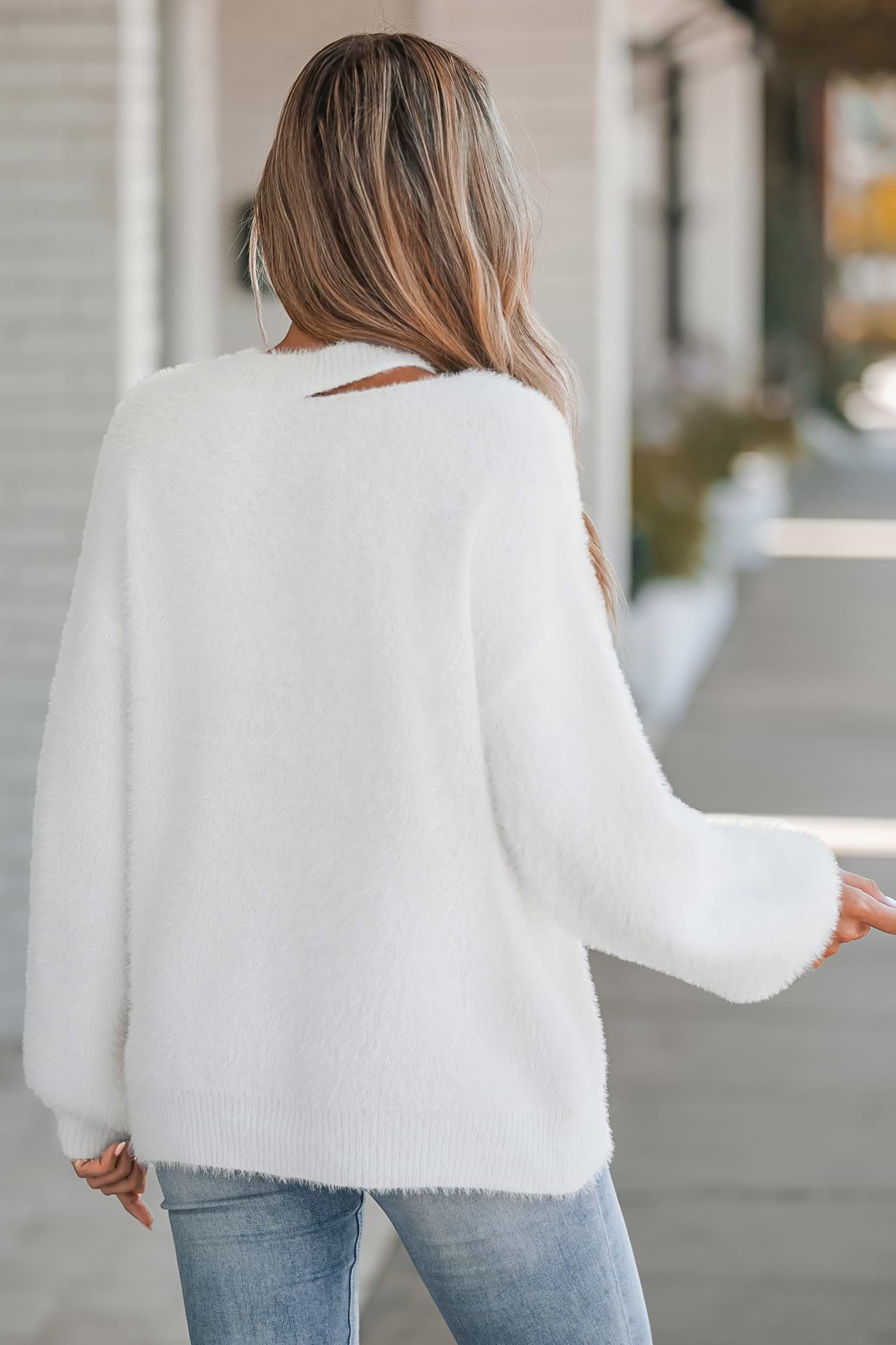 HomeFuzzy Knit Asymetrical Neck Sweater