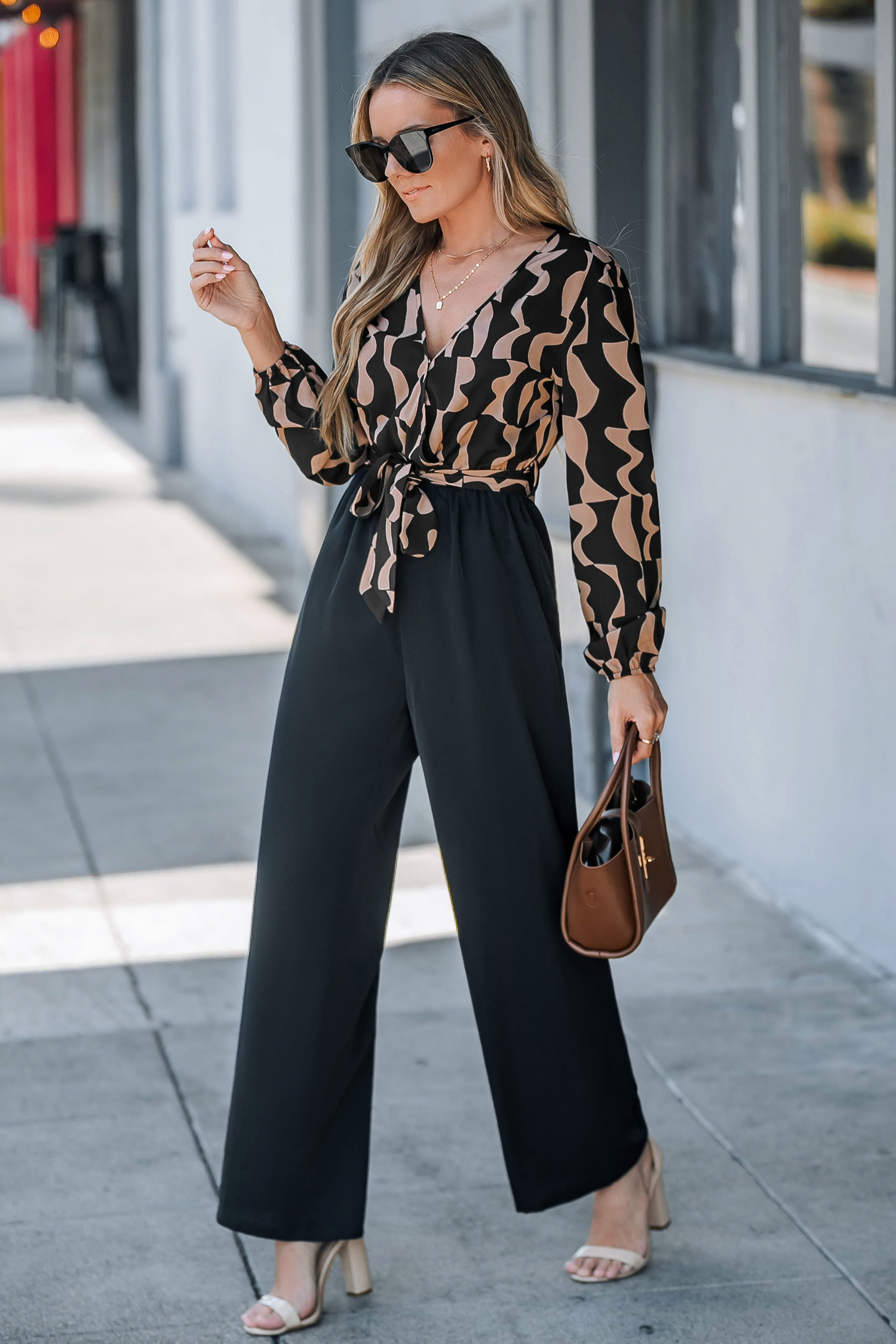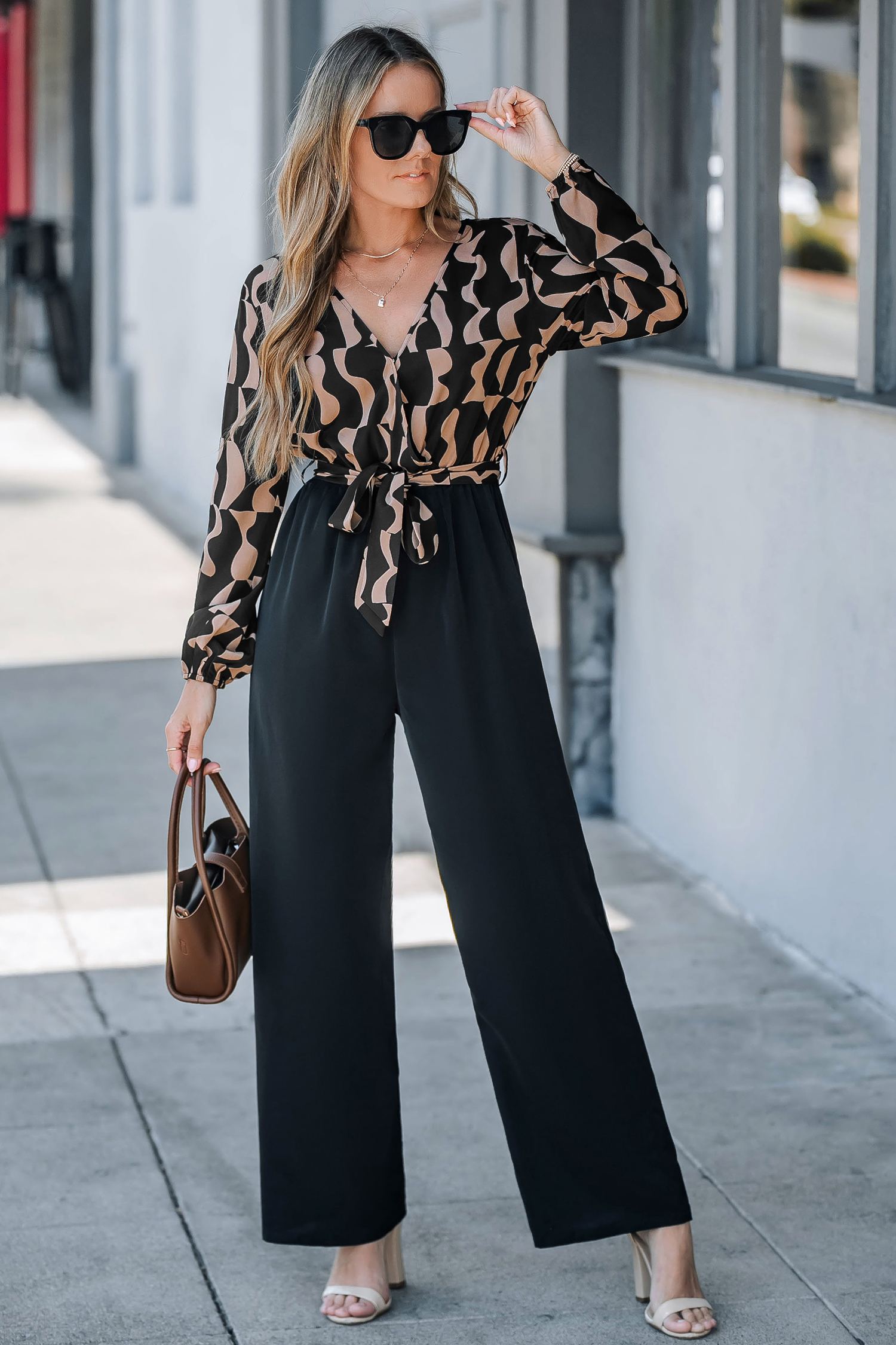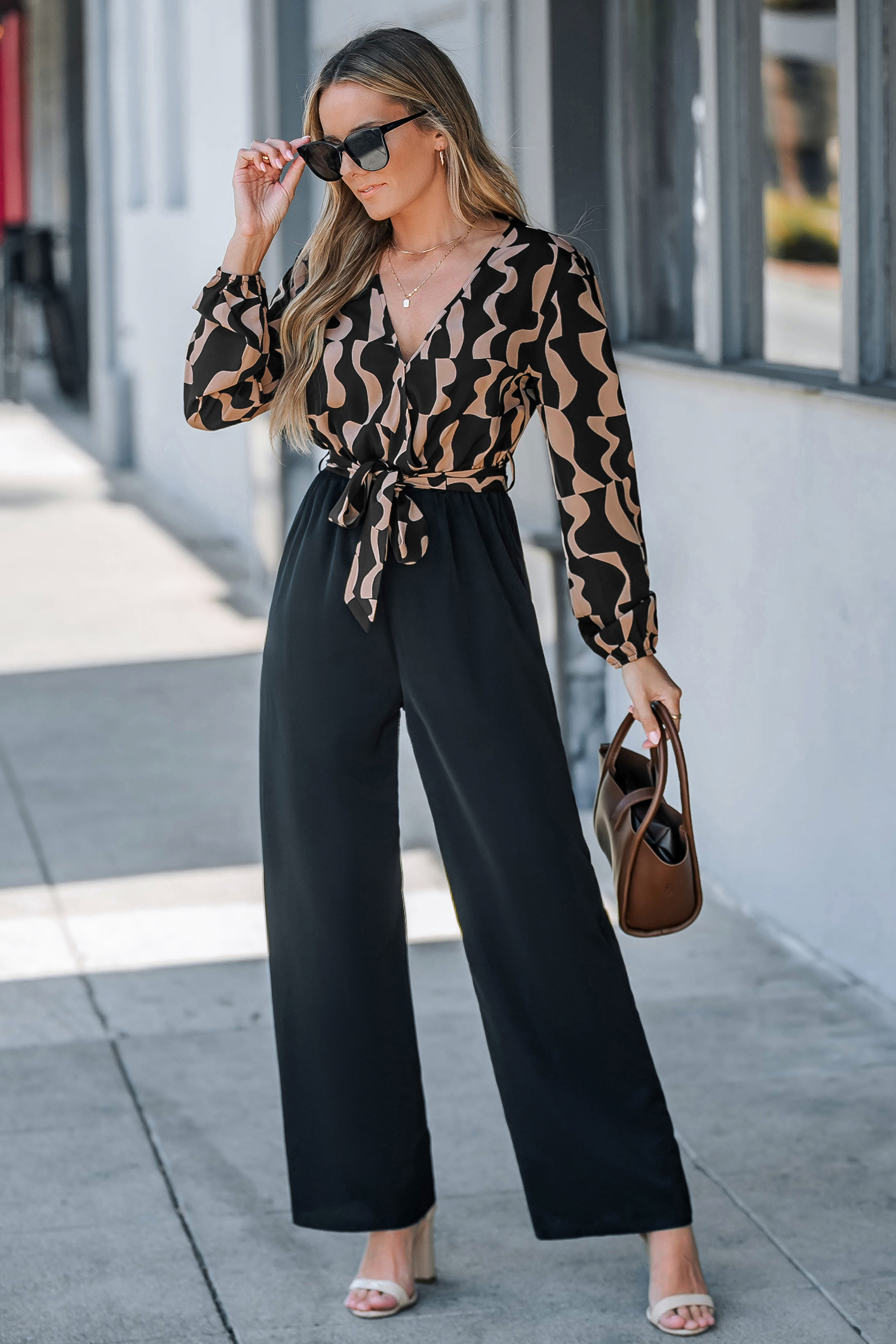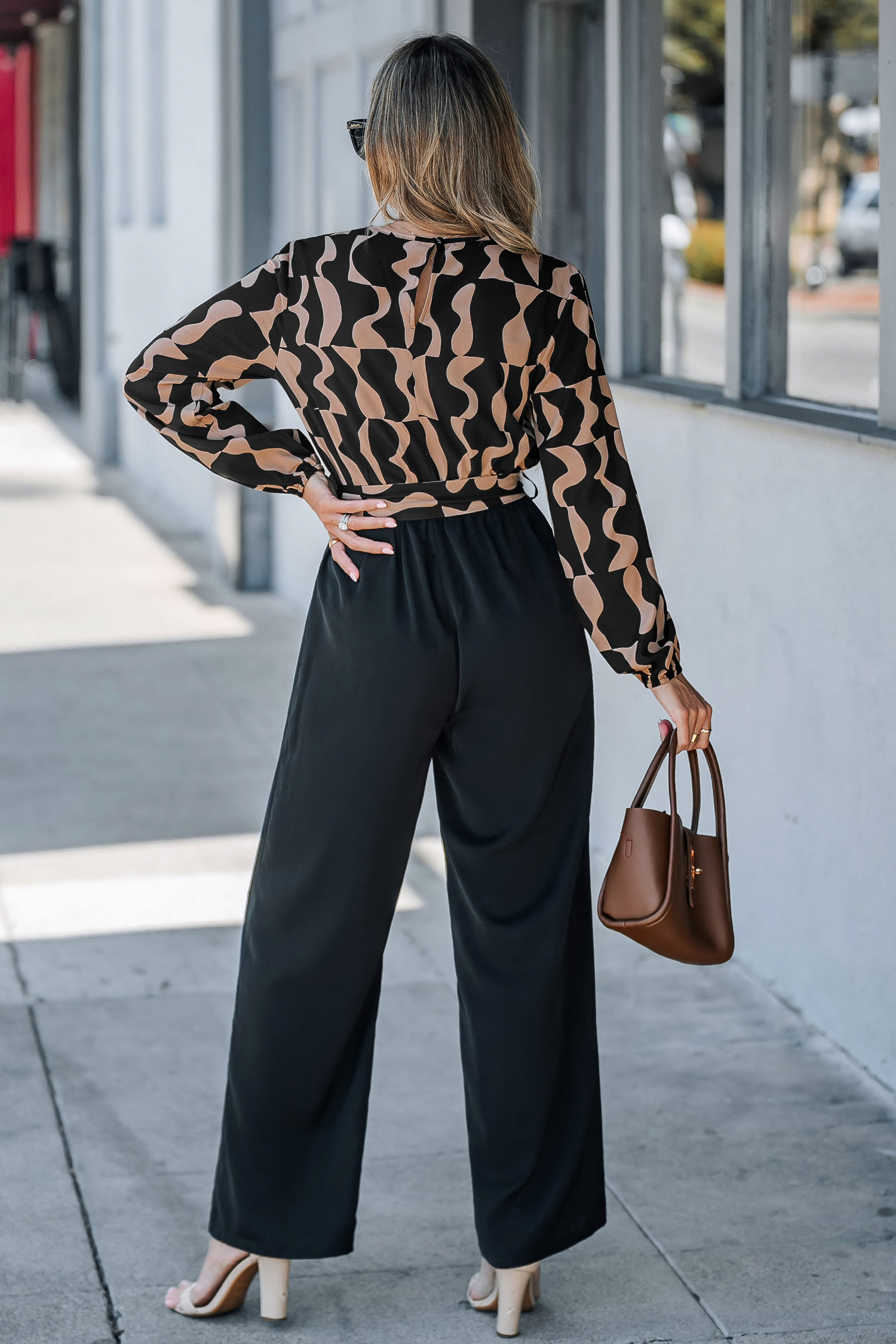 Geo Long Sleeve Top & Tapered Leg Pants Jumpsuit