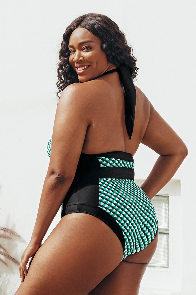 HomeGeometric Print Halter Plus Size One Piece Swimsuit