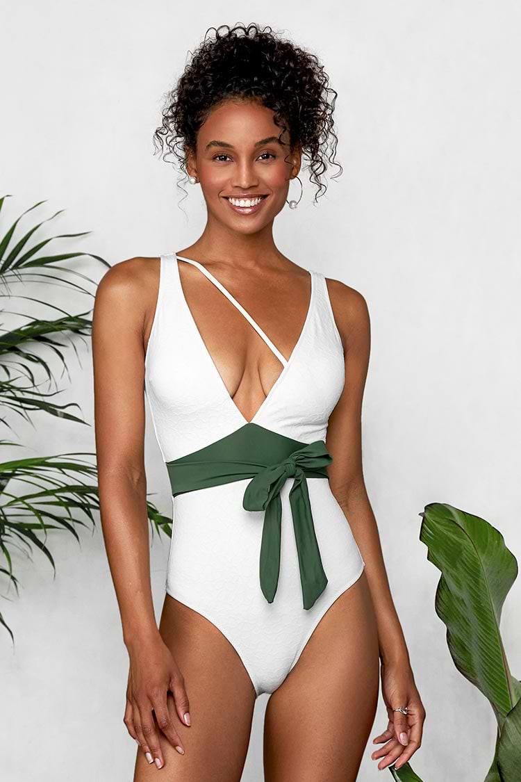 HomeGorgeous White Plunge One Piece Swimsuit
