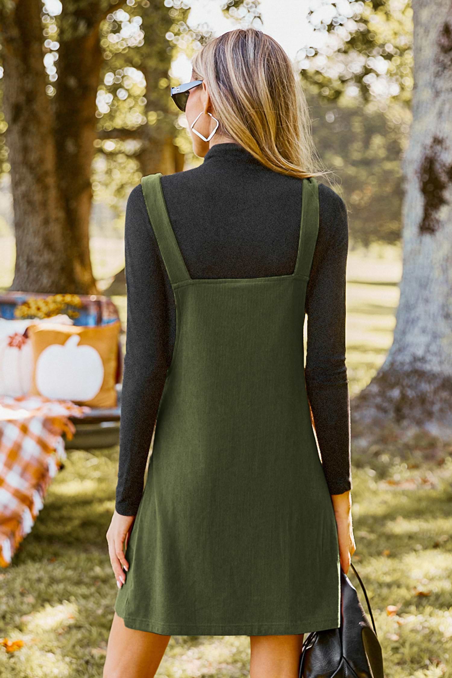 HomeGreen Corduroy Square Neck Pinafore Dress