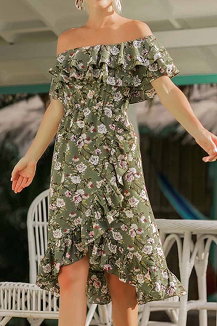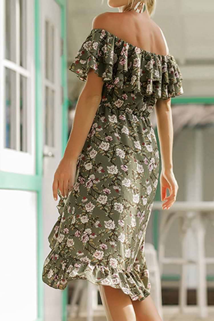 Green Floral Off-the-Shoulder Dress