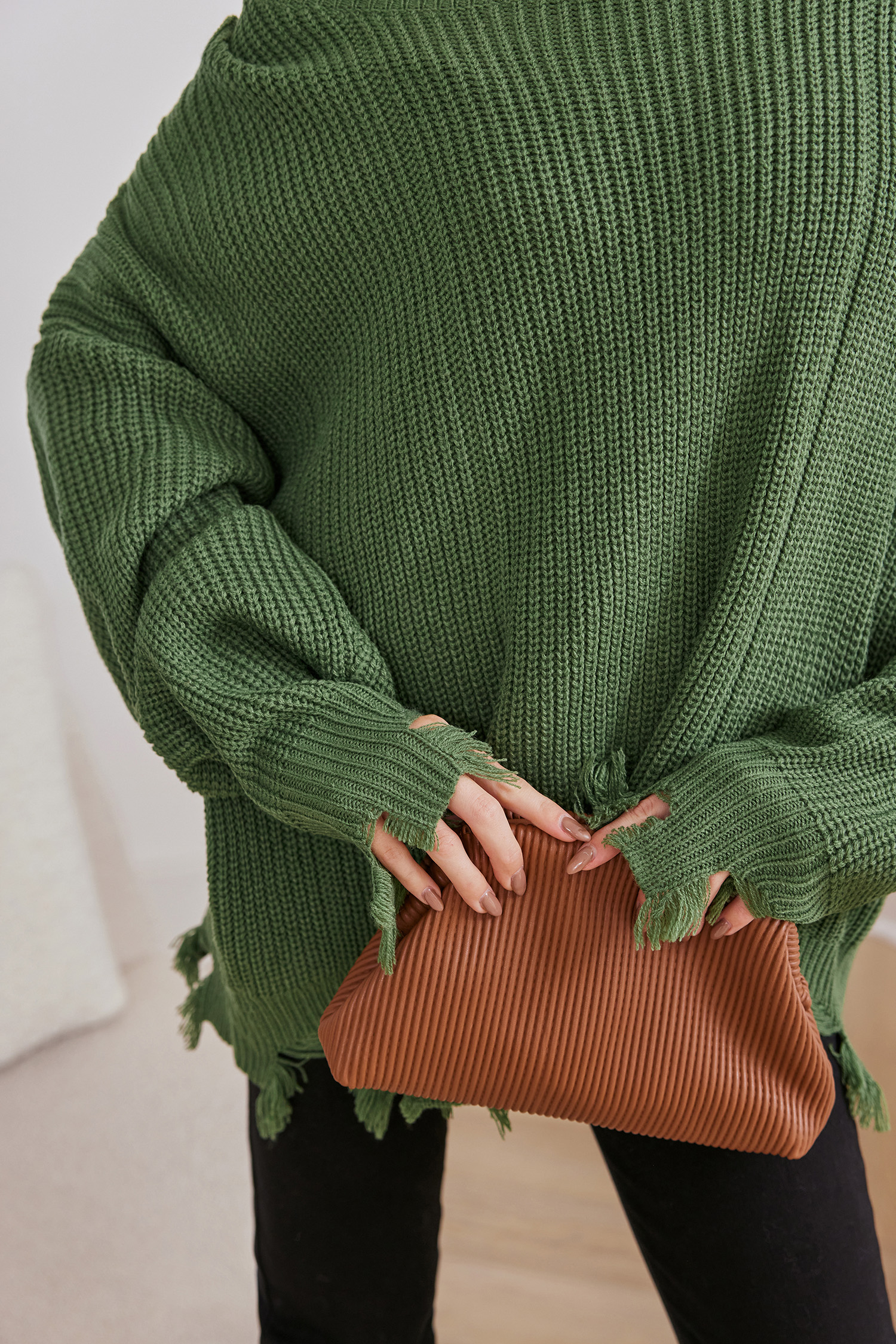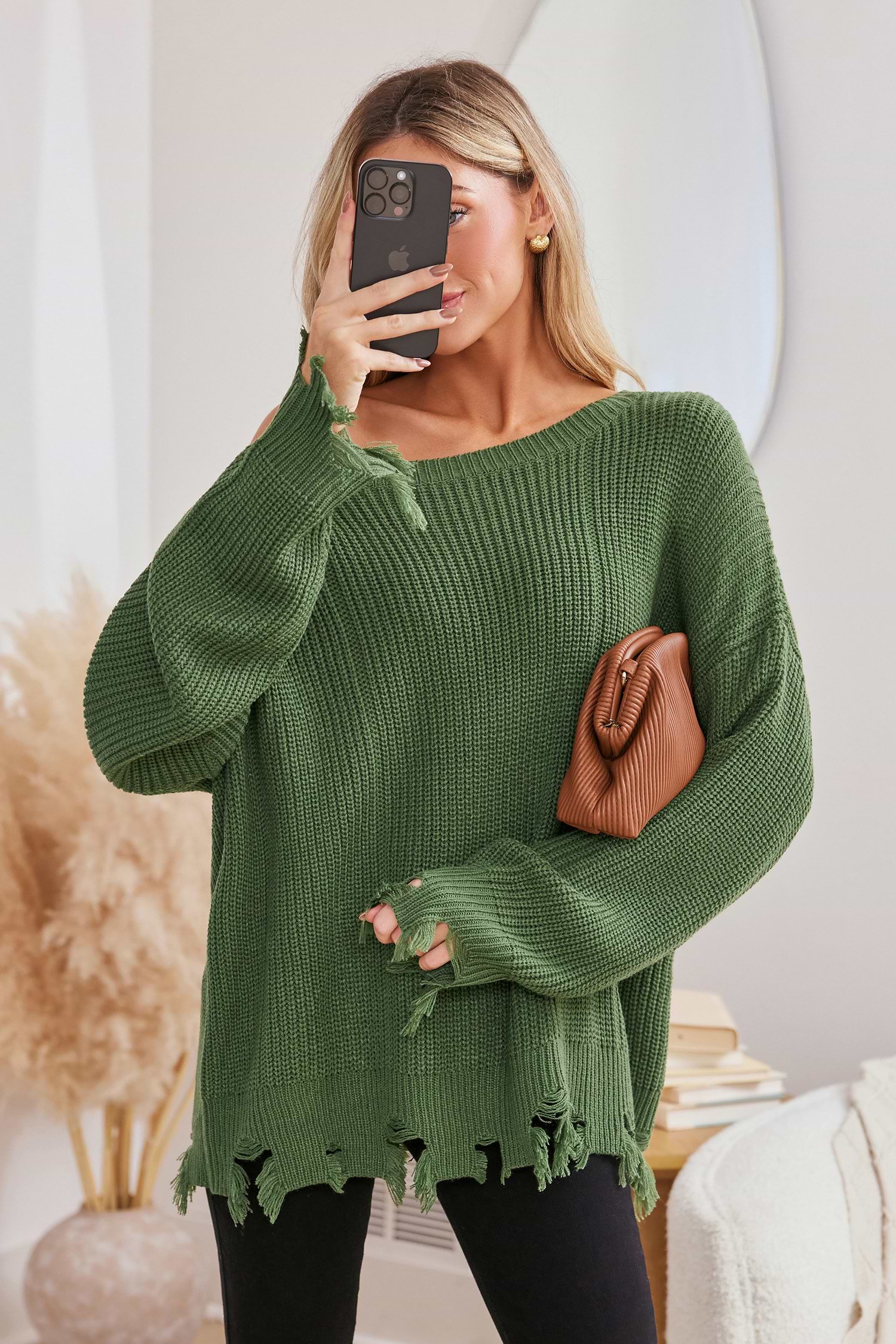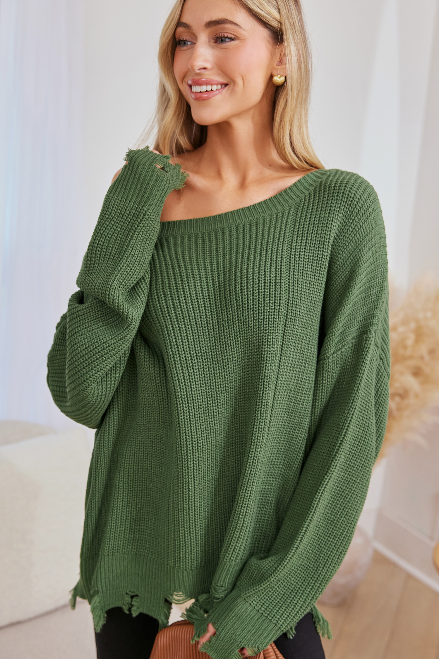 HomeGreen Off-Shoulder Stockinette Sweater