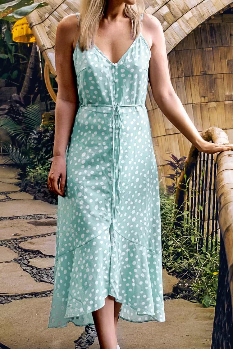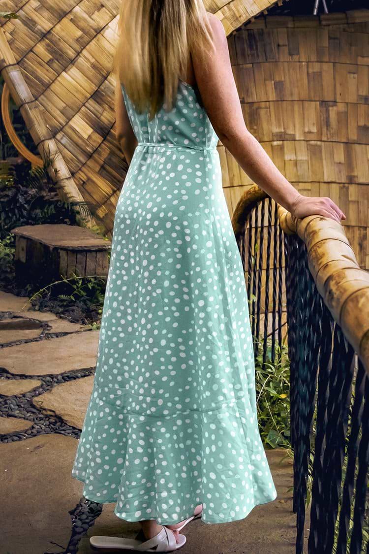 HomeGreen Polka Dot Ruffle Maxi Dress