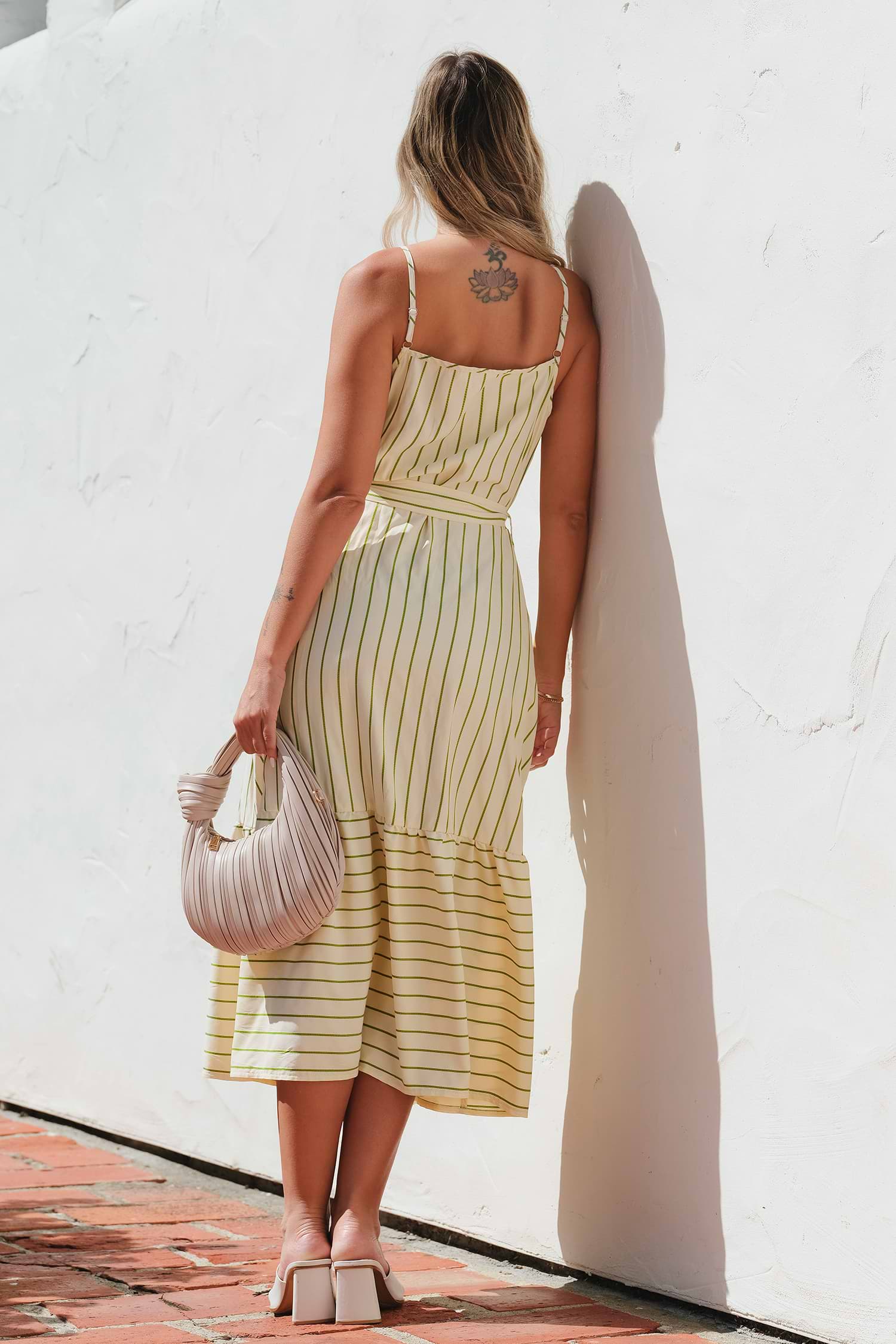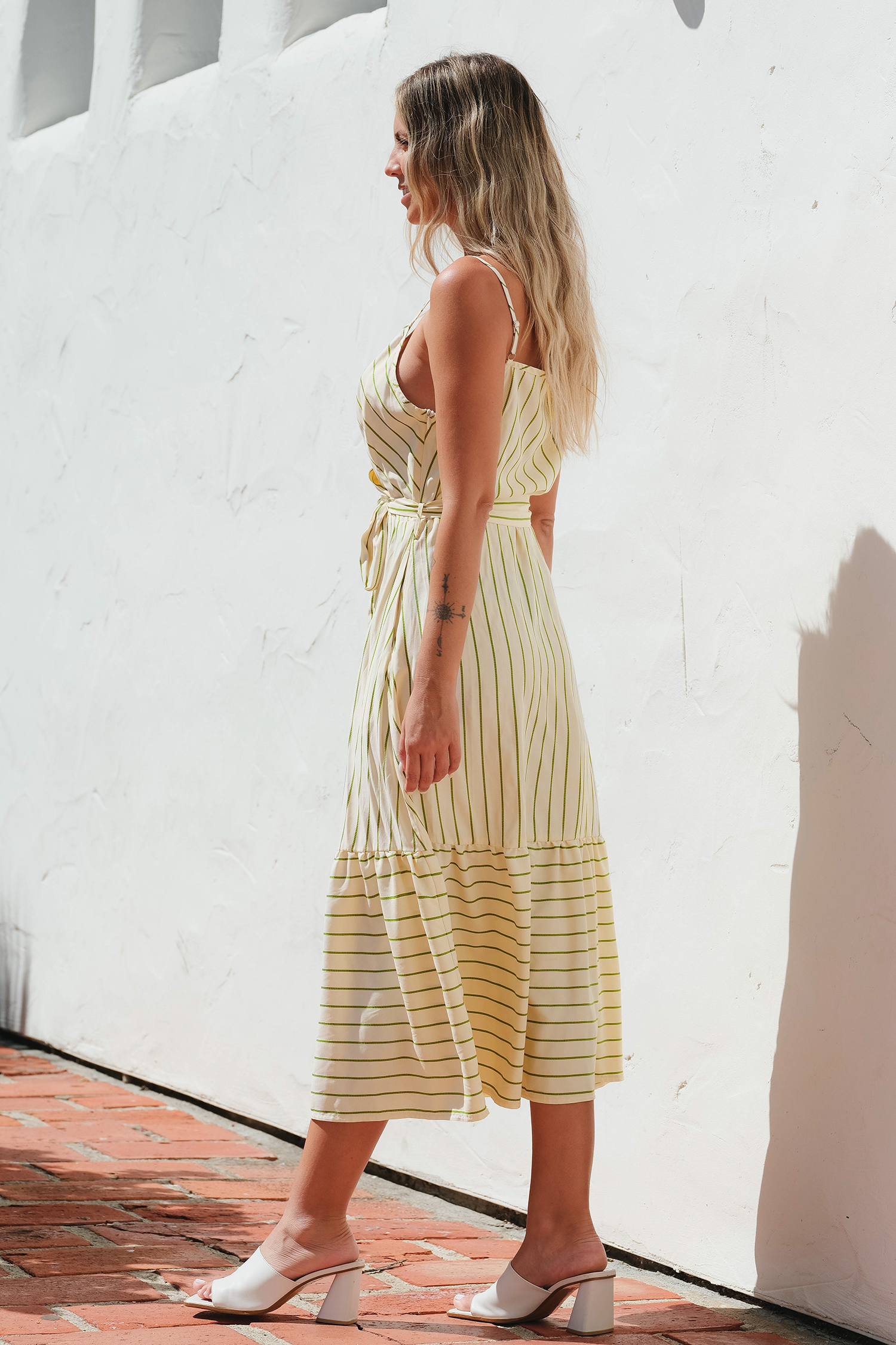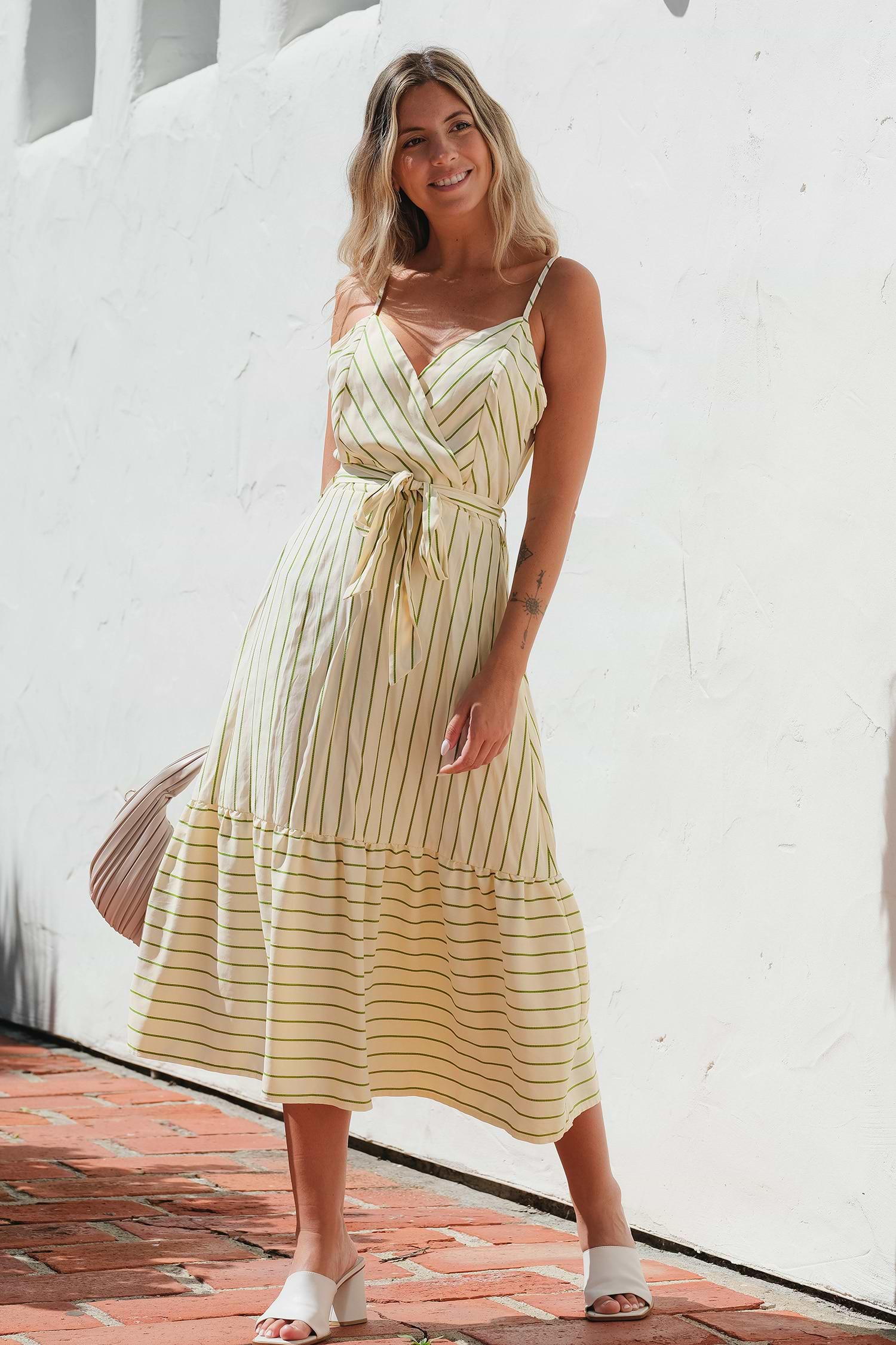 HomeGreen & White Stripe Sleeveless Surplice Ruffle Maxi Dress