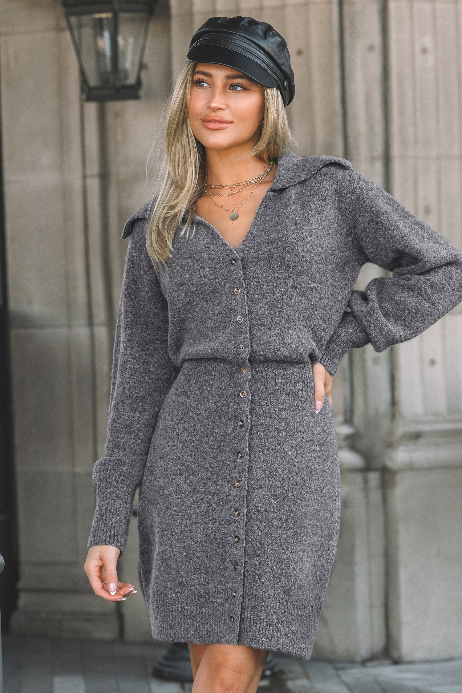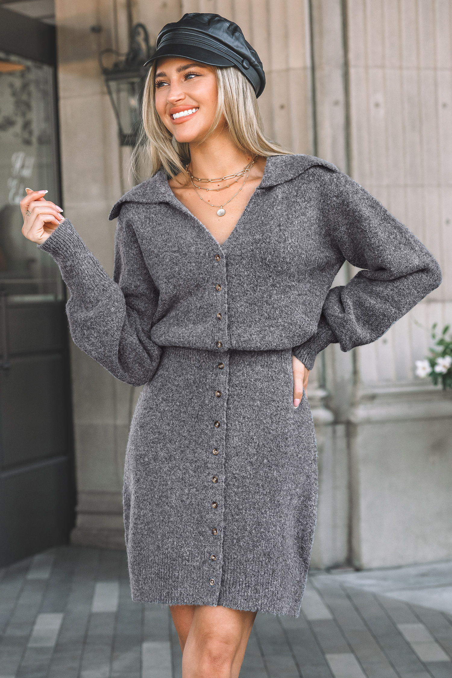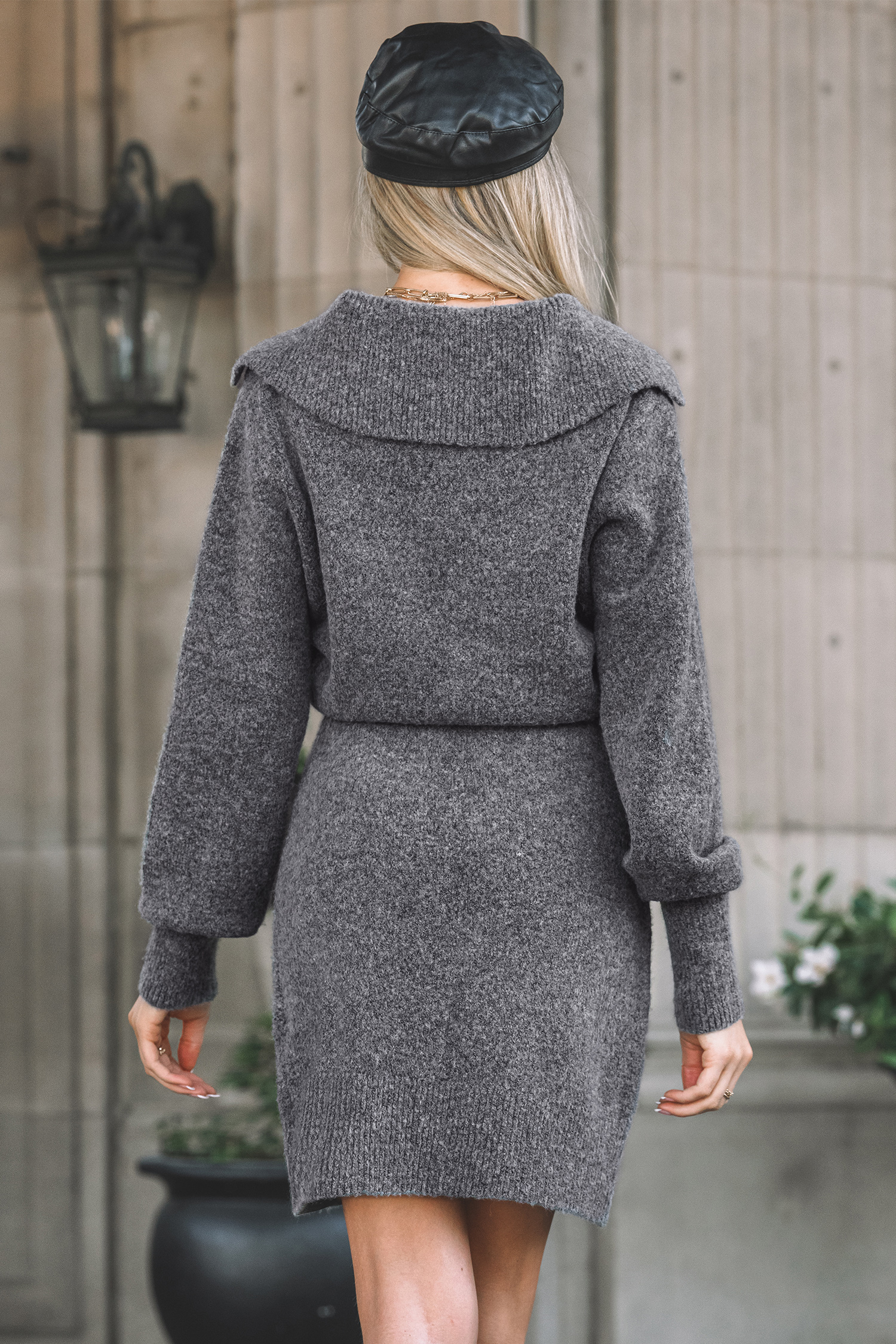 HomeGrey Collared Cinched Waist Mini Sweater Dress
