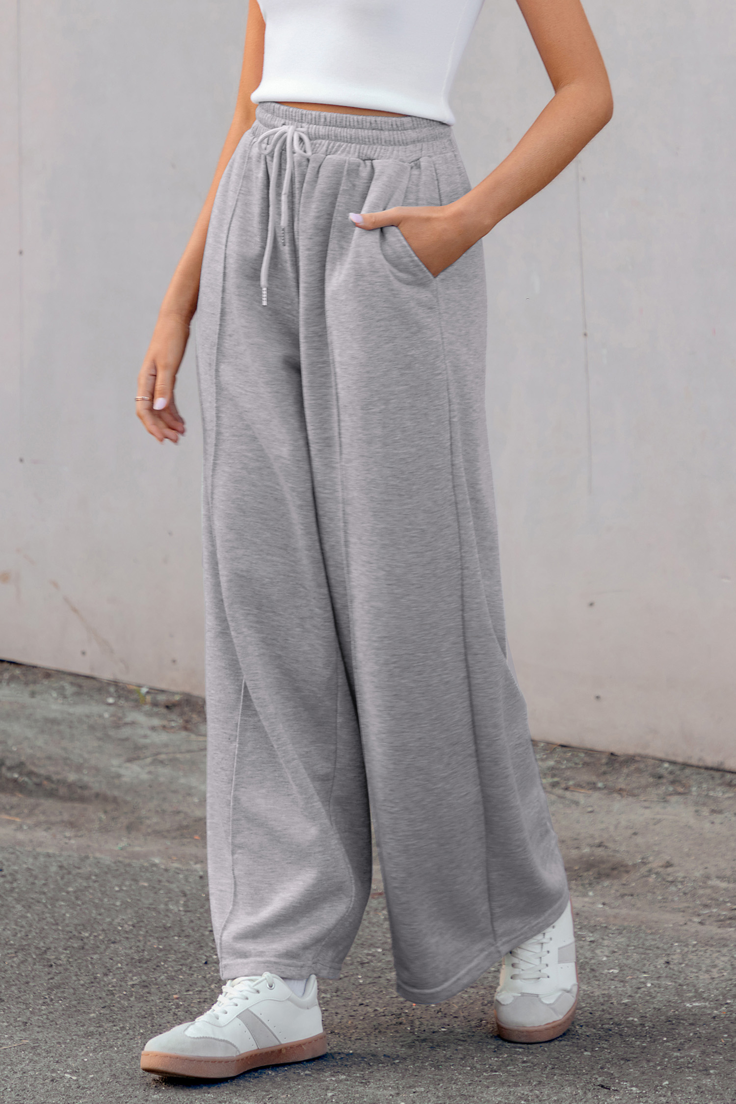 Grey Drawstring Waist Wide Leg Jersey Pants