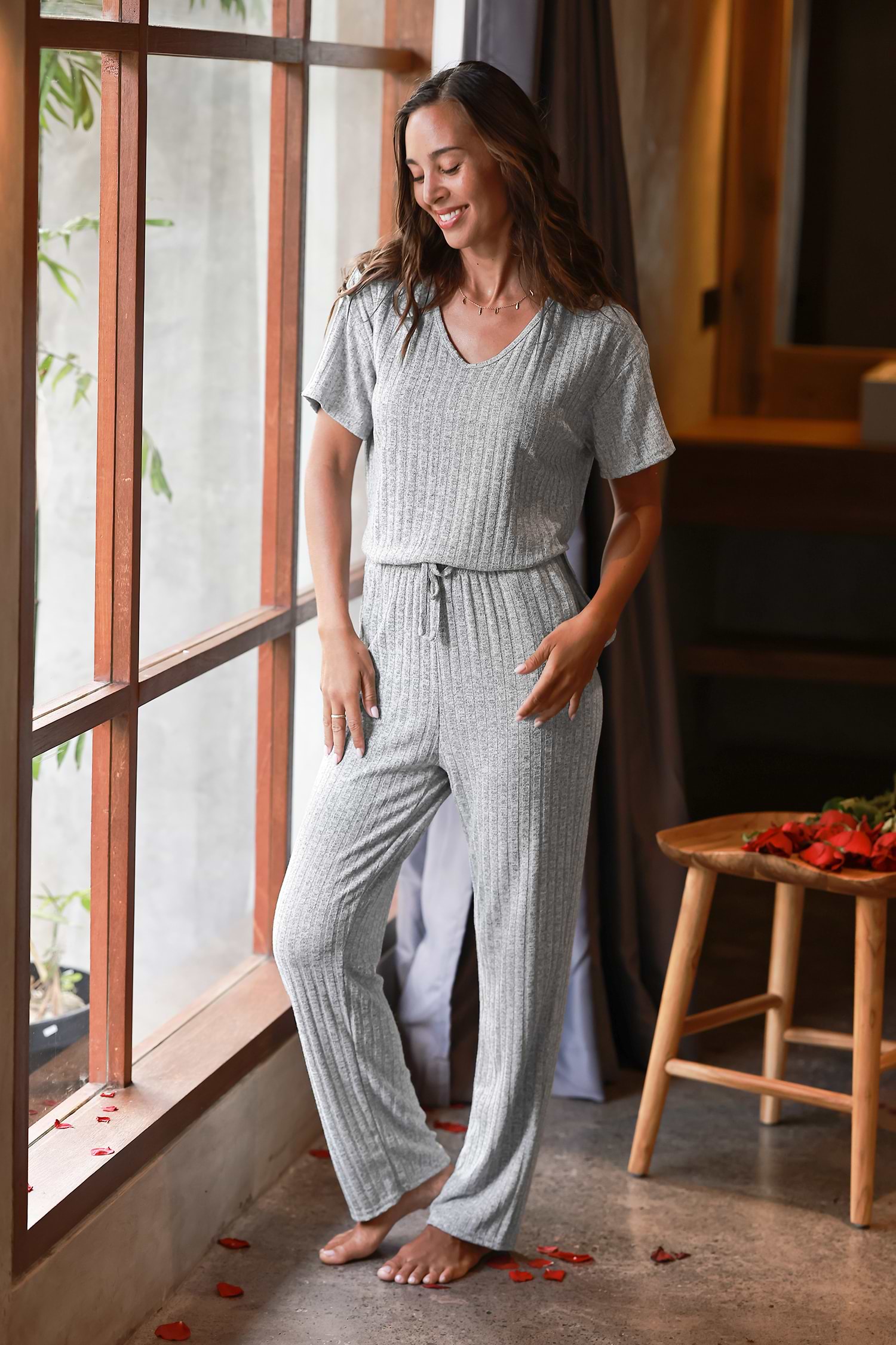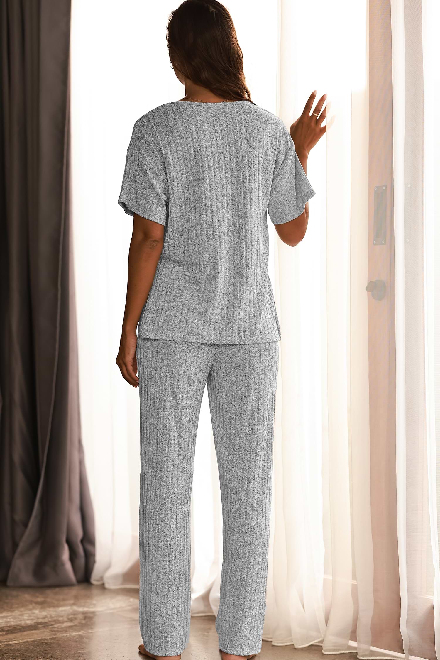 Grey Ribbed Pajama Set