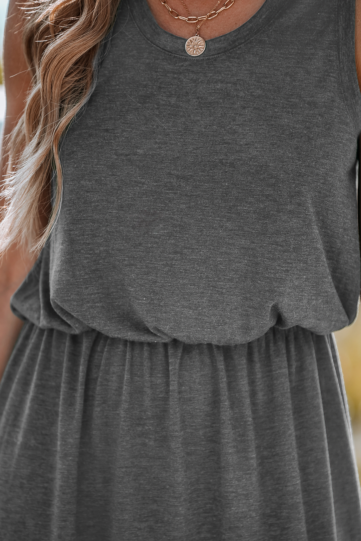 HomeGrey Round Neck Cinched Waist Jersey Maxi Dress