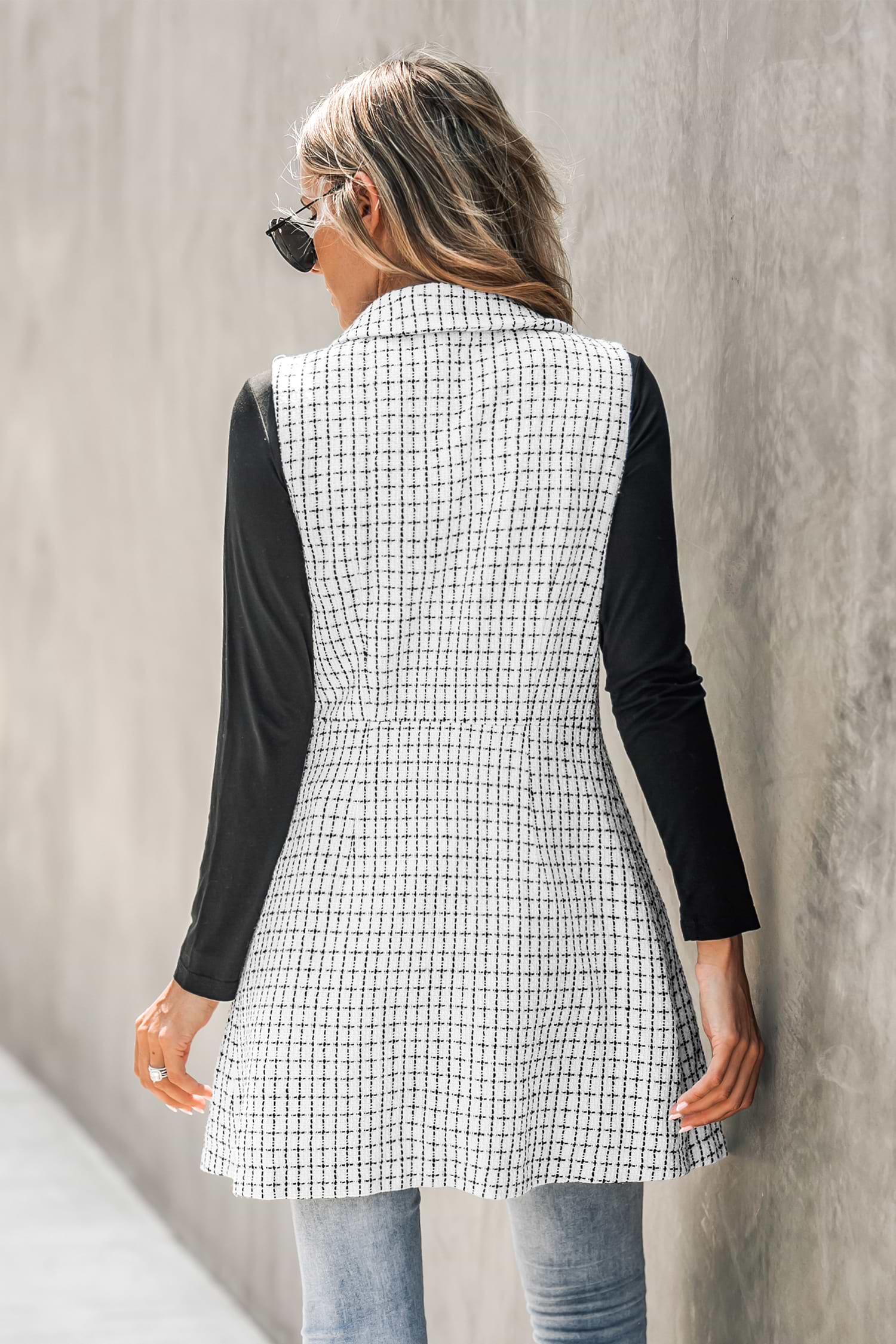 HomeGrid Print Double-Breasted Sleeveless Blazer