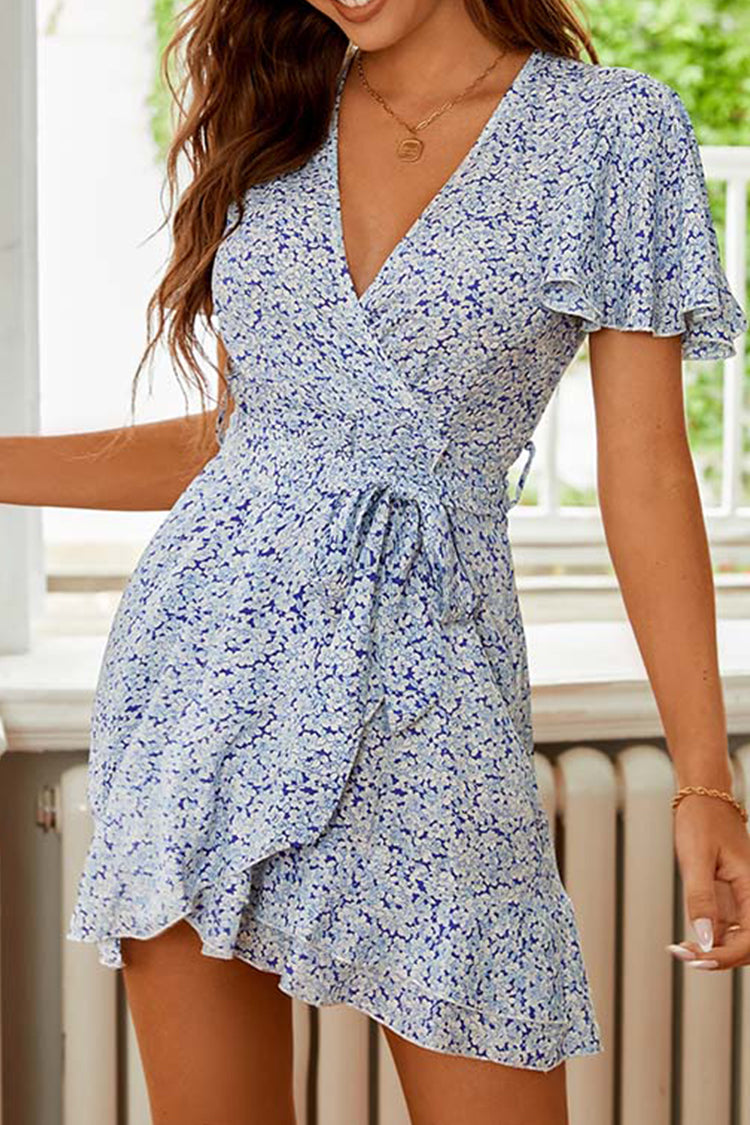 HomeHermine V-neck Tie Mini Length A-Shape Dress