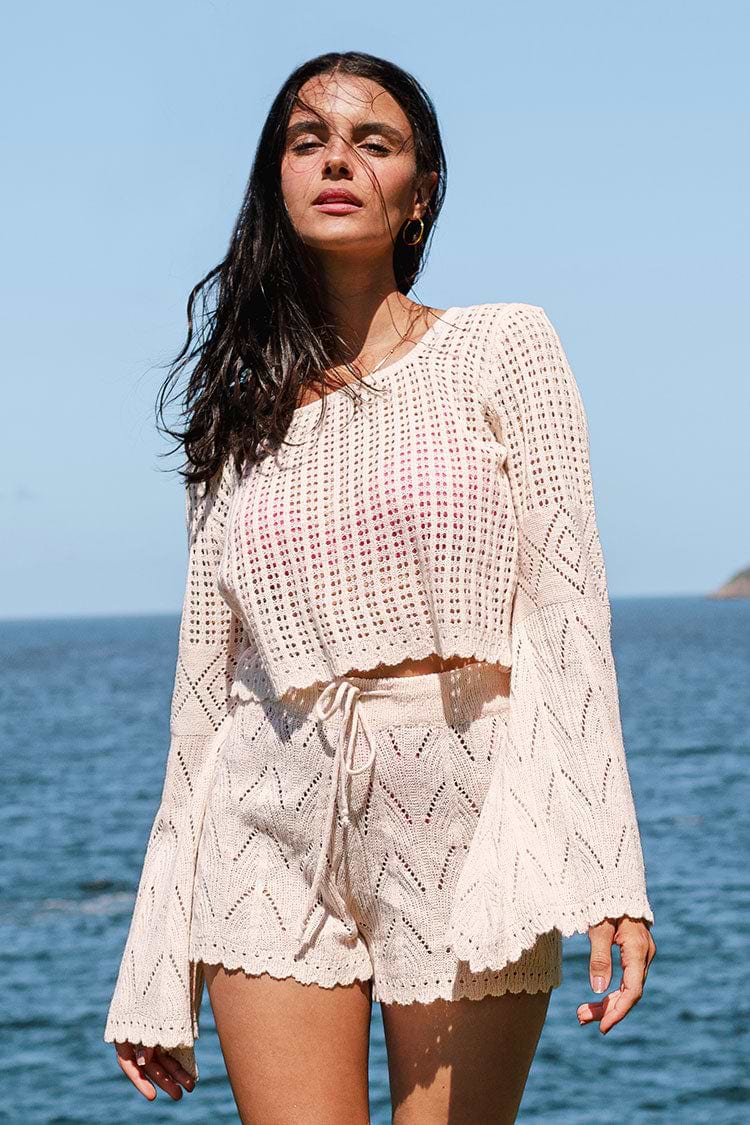 Hermosa Bell Sleeve Crochet Coverup Set