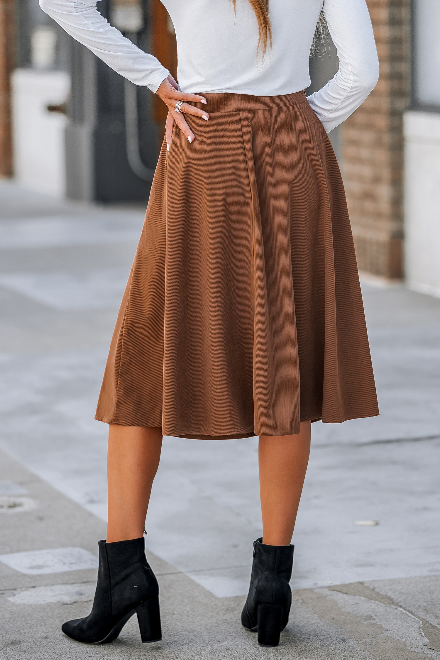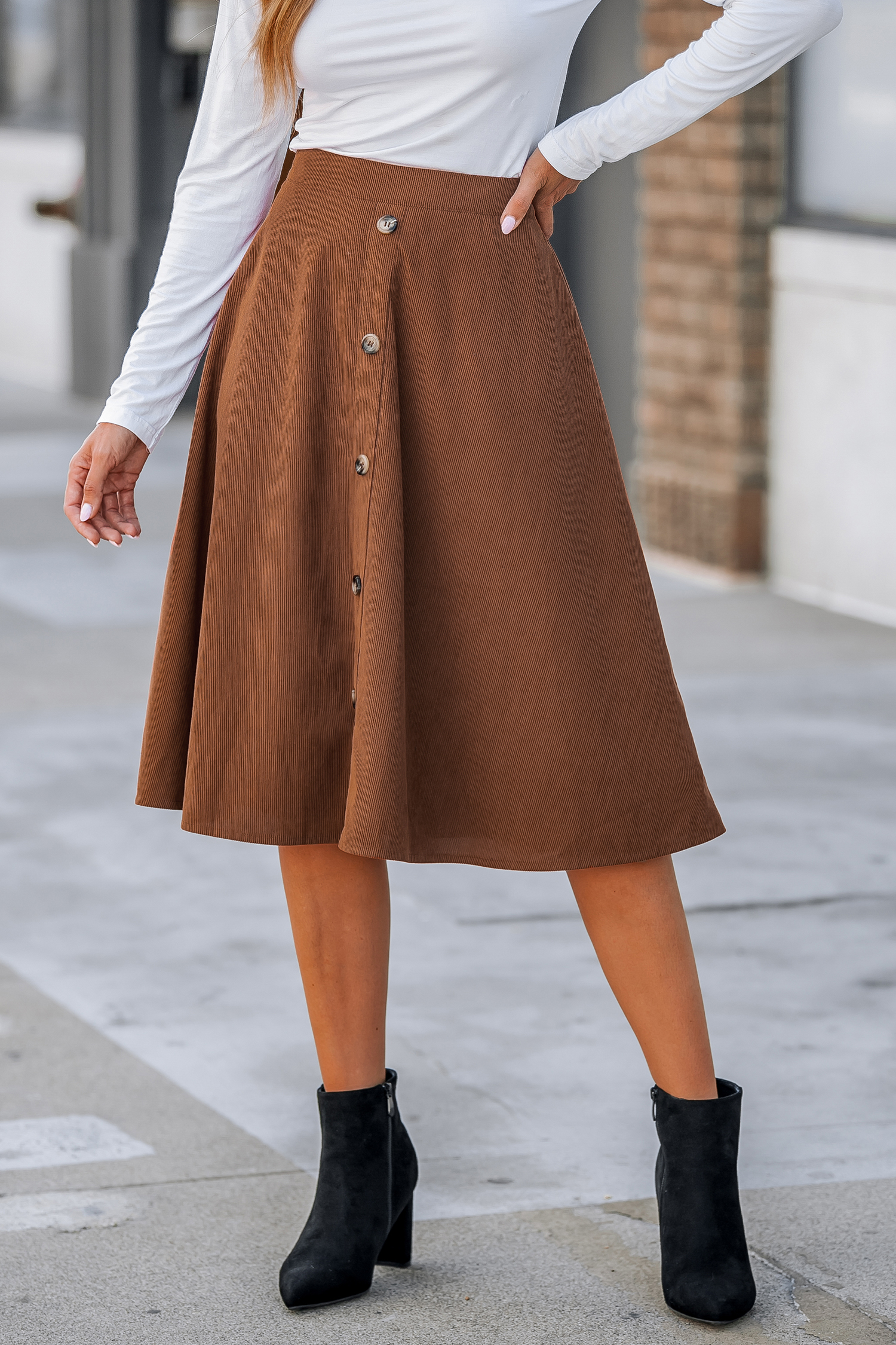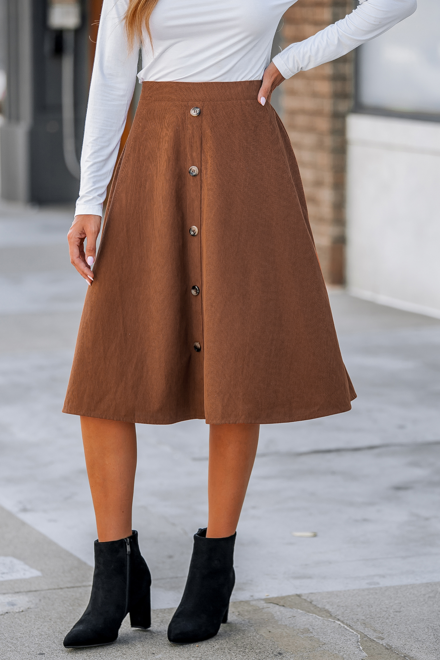 High Waist Button-Front Skirt