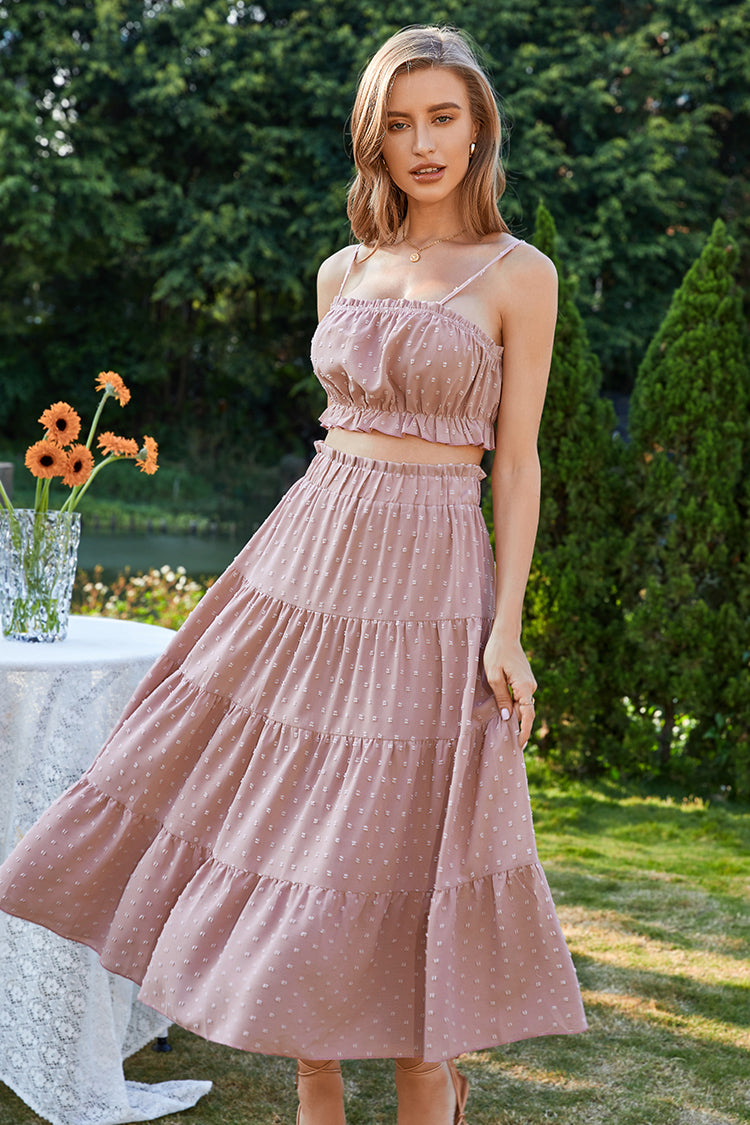 HomeHollis Tea Length Frill Pleated A-Shape Dress