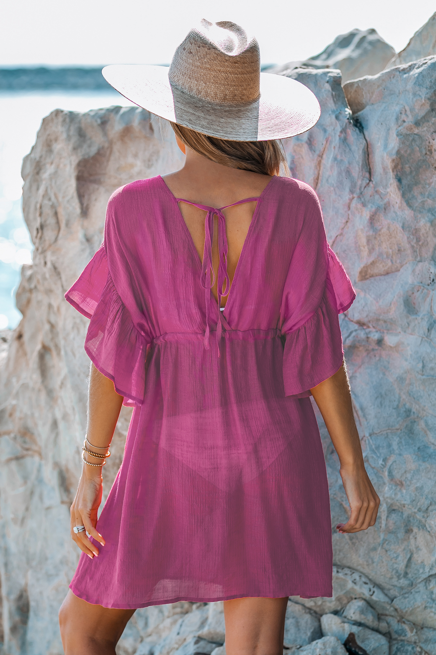 HomeHot Pink Drawstring Mini Cover-Up Dress