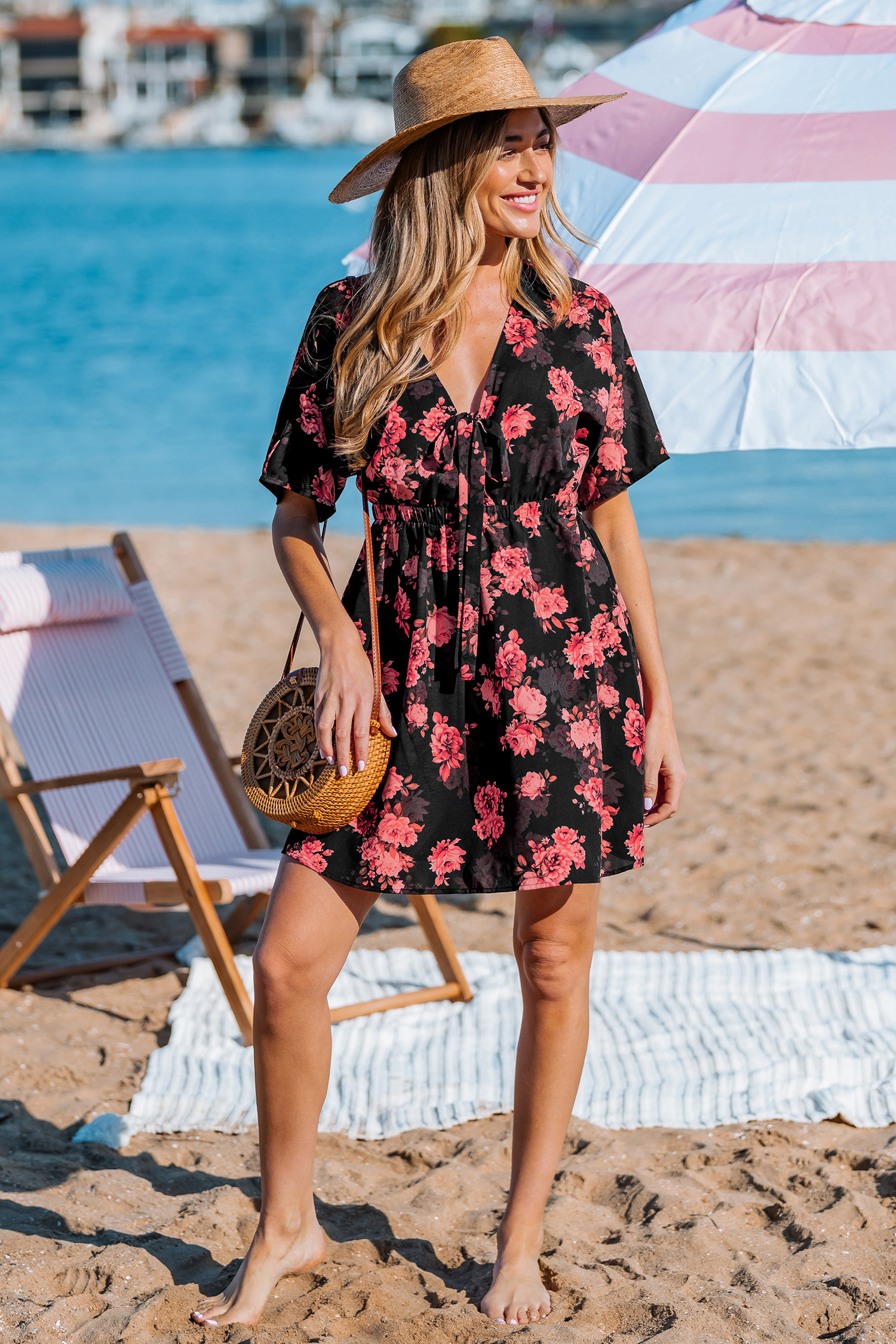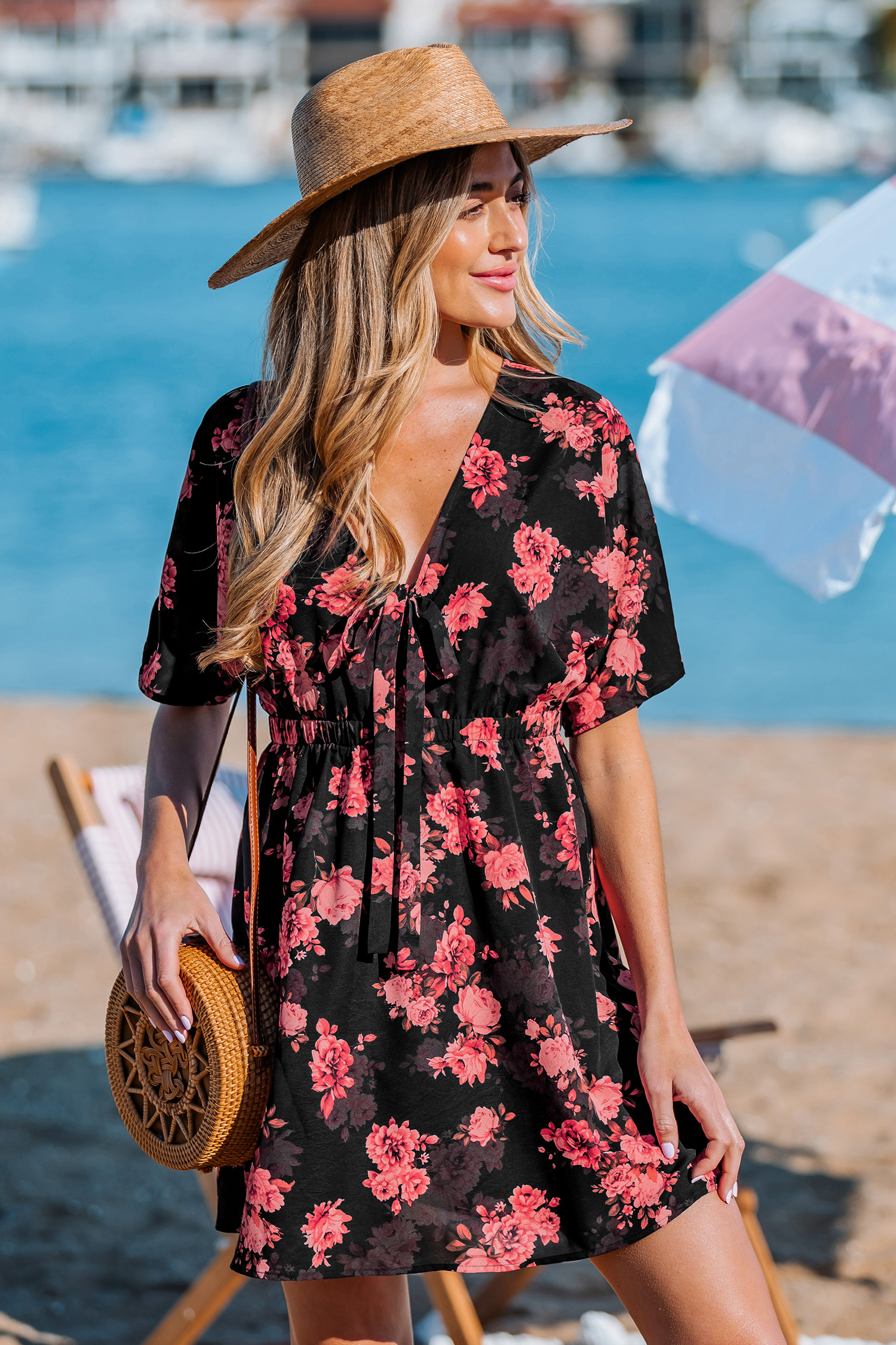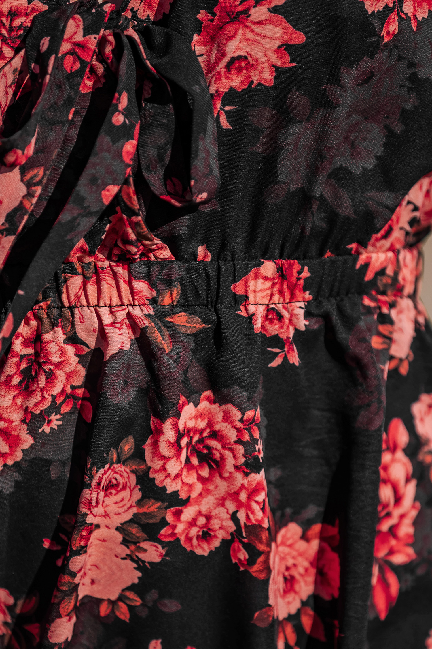 Red Plaid Blouson Sleeve Ruffle Cuff Wrap Mini Dress